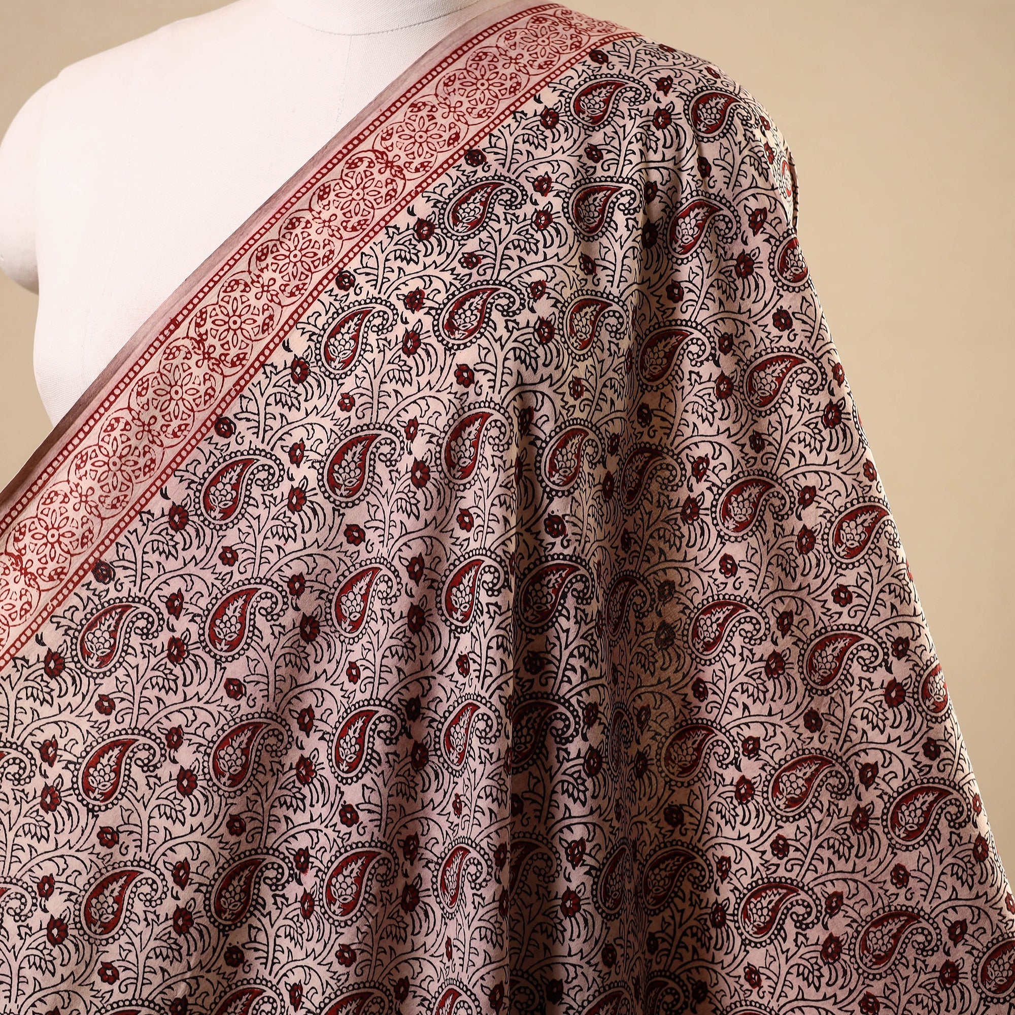 • Beige - natural dyed cotton bagh fabric 23 - handcrafted