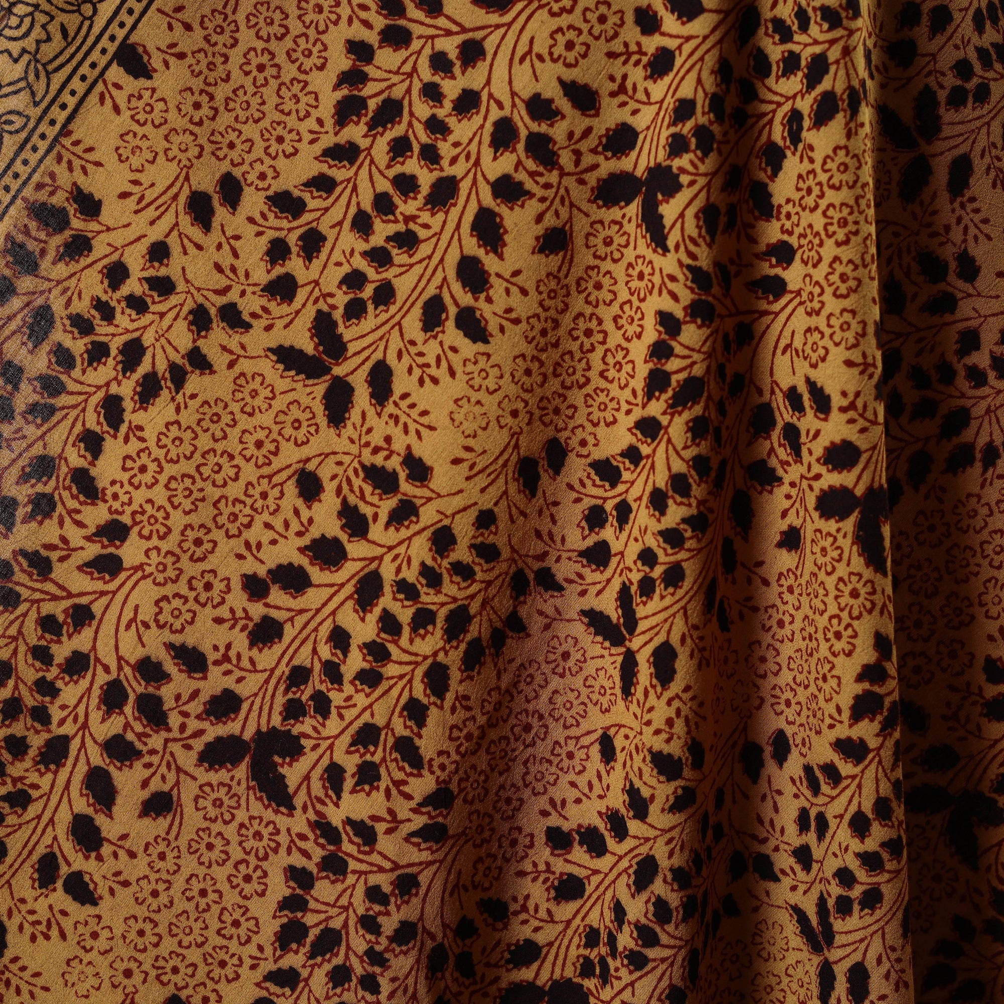 This brown bagh print fabric is hand block printed by master artisan Umar Faruk Khatri from Bagh, Madhya Pradesh. It is crafted using natural dyes and traditional techniques, making it ideal for garments, accessories, or home decor. This piece beautifully blends heritage with everyday usability.