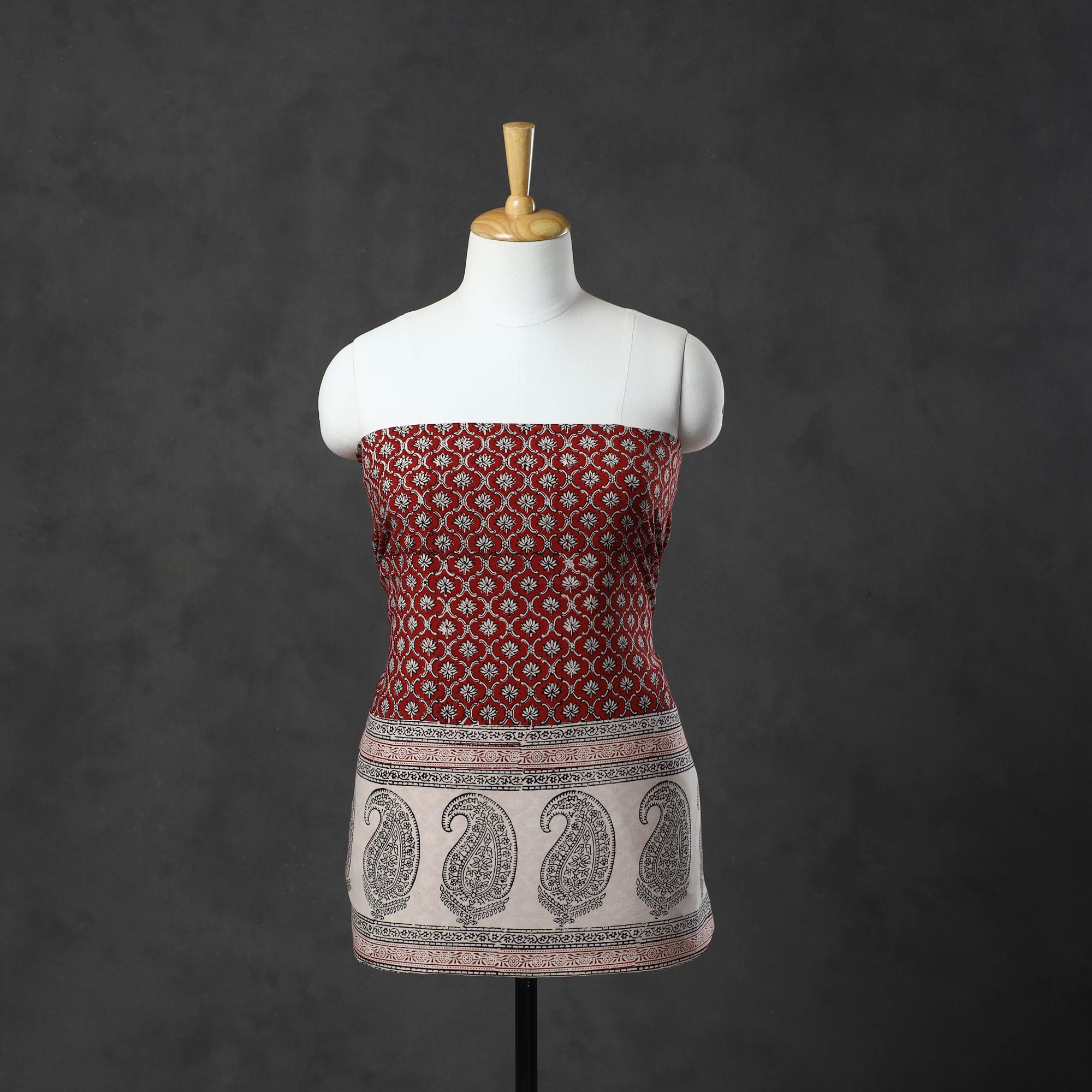 •  Red Natural Dyed Cotton Bagh Print Kurta Material
