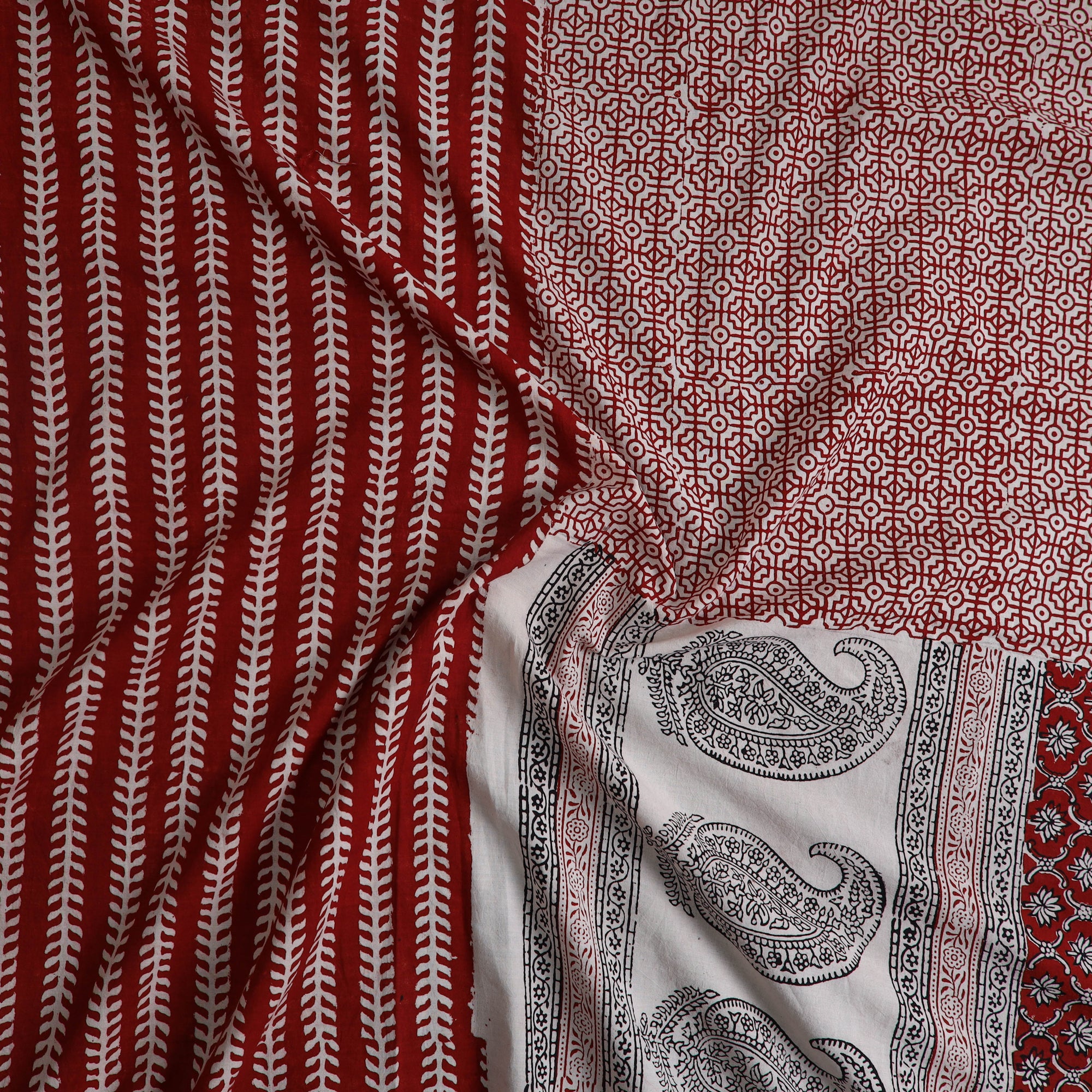 Red - Natural Dyed Cotton Bagh Print Unstitched Kurta Material (2.2m) 16