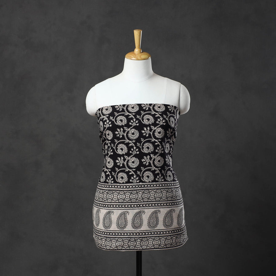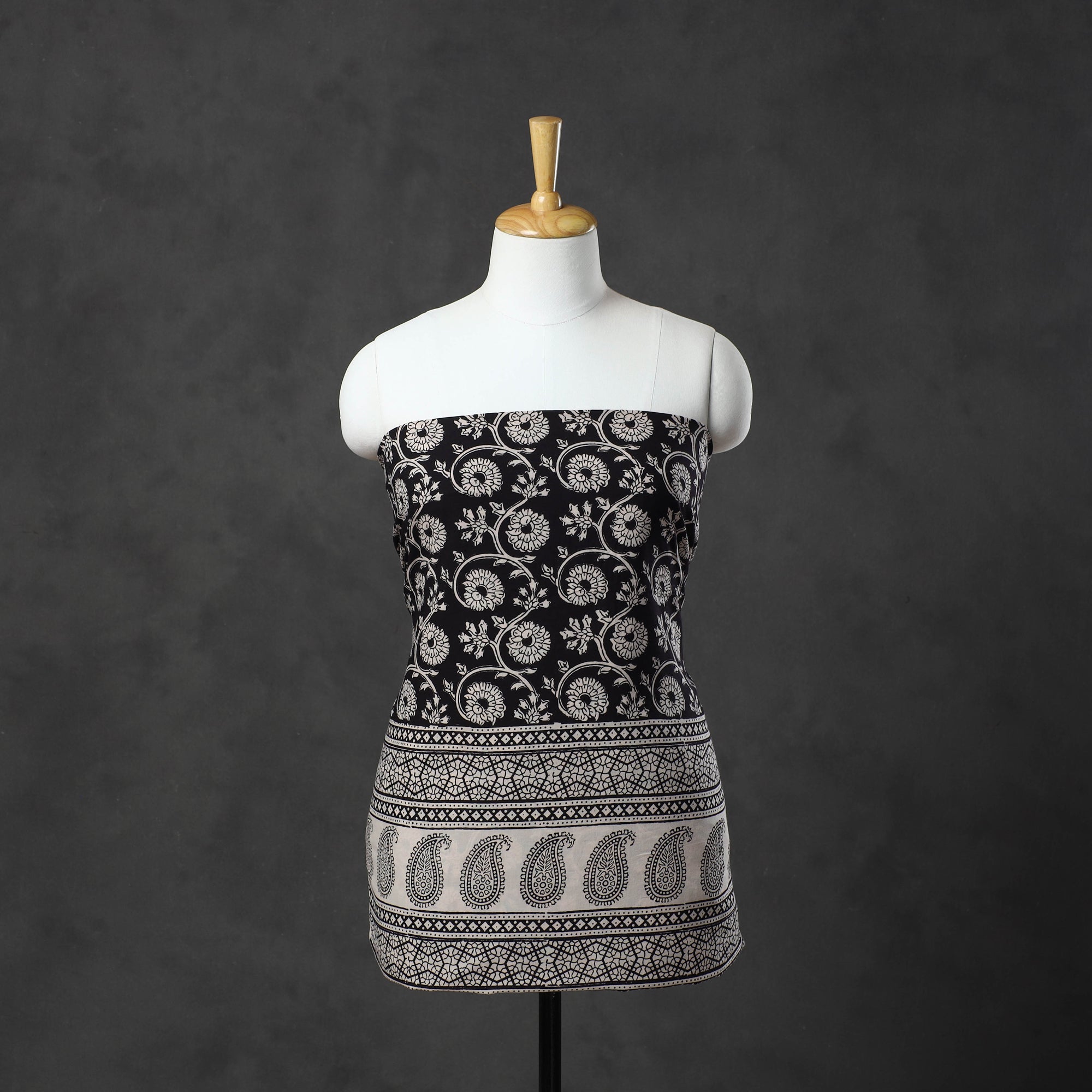 •  Black Natural Dyed Cotton Bagh Print Kurta Material