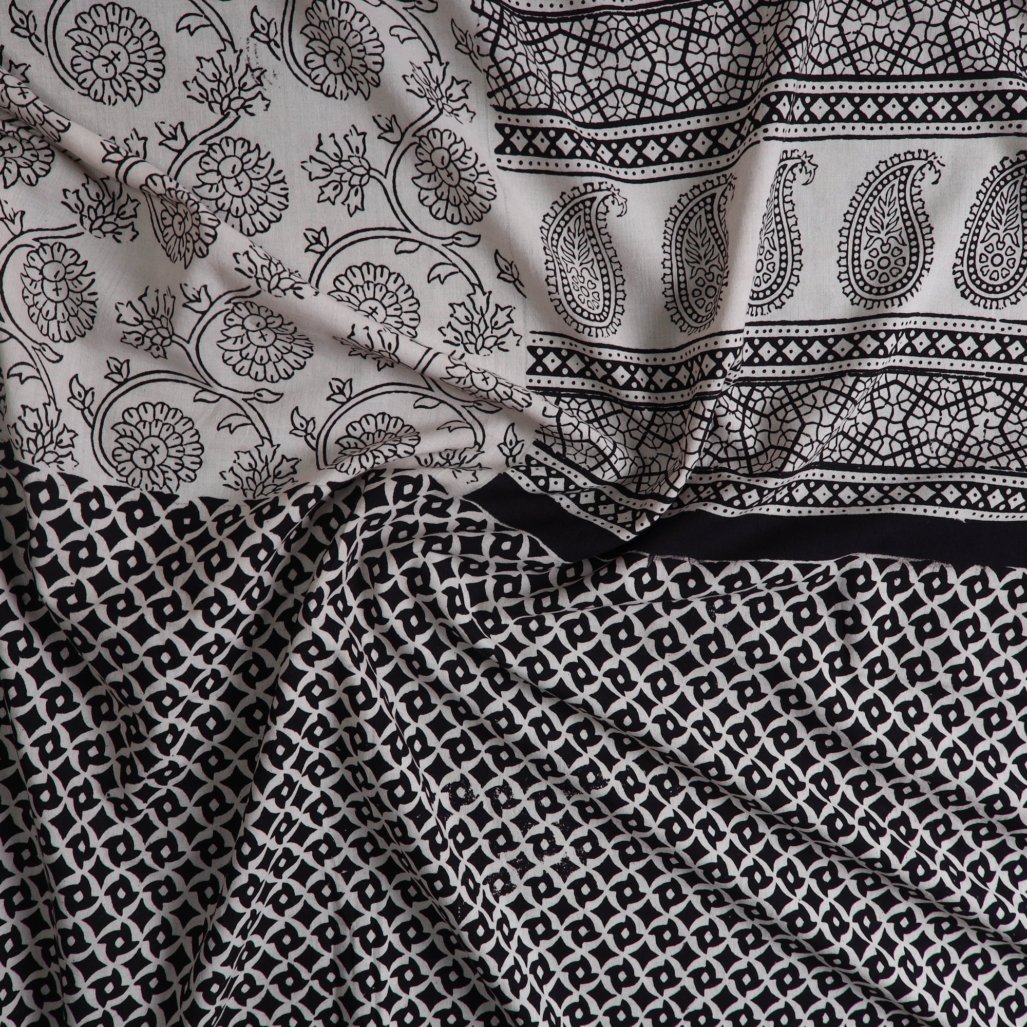 Black - Natural Dyed Cotton Bagh Print Unstitched Kurta Material (2.2m) 25
