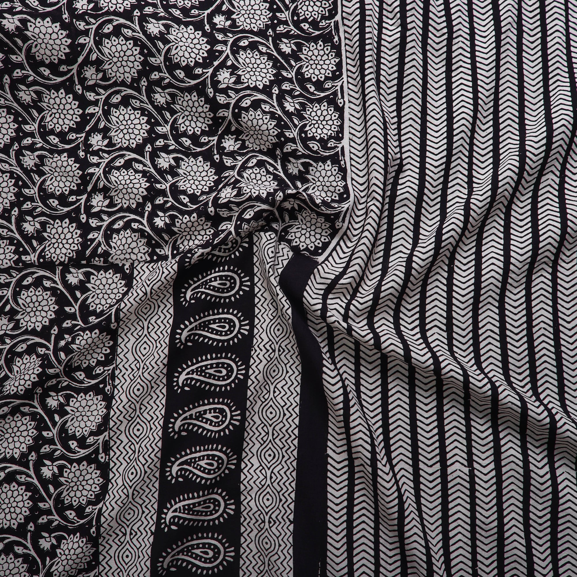 •  Black Natural Dyed Cotton Bagh Print Kurta Material