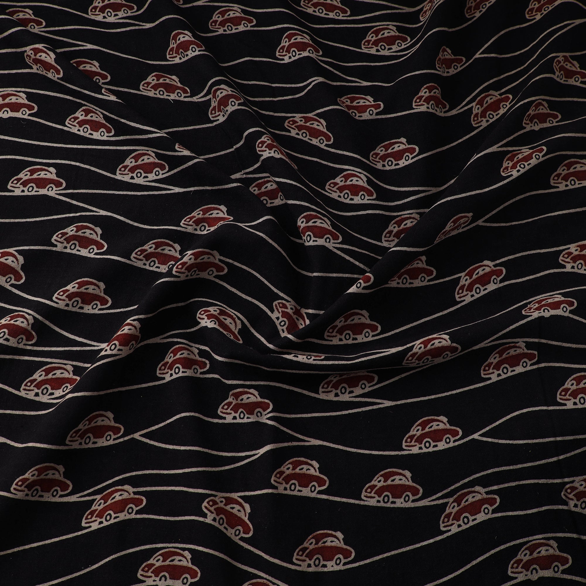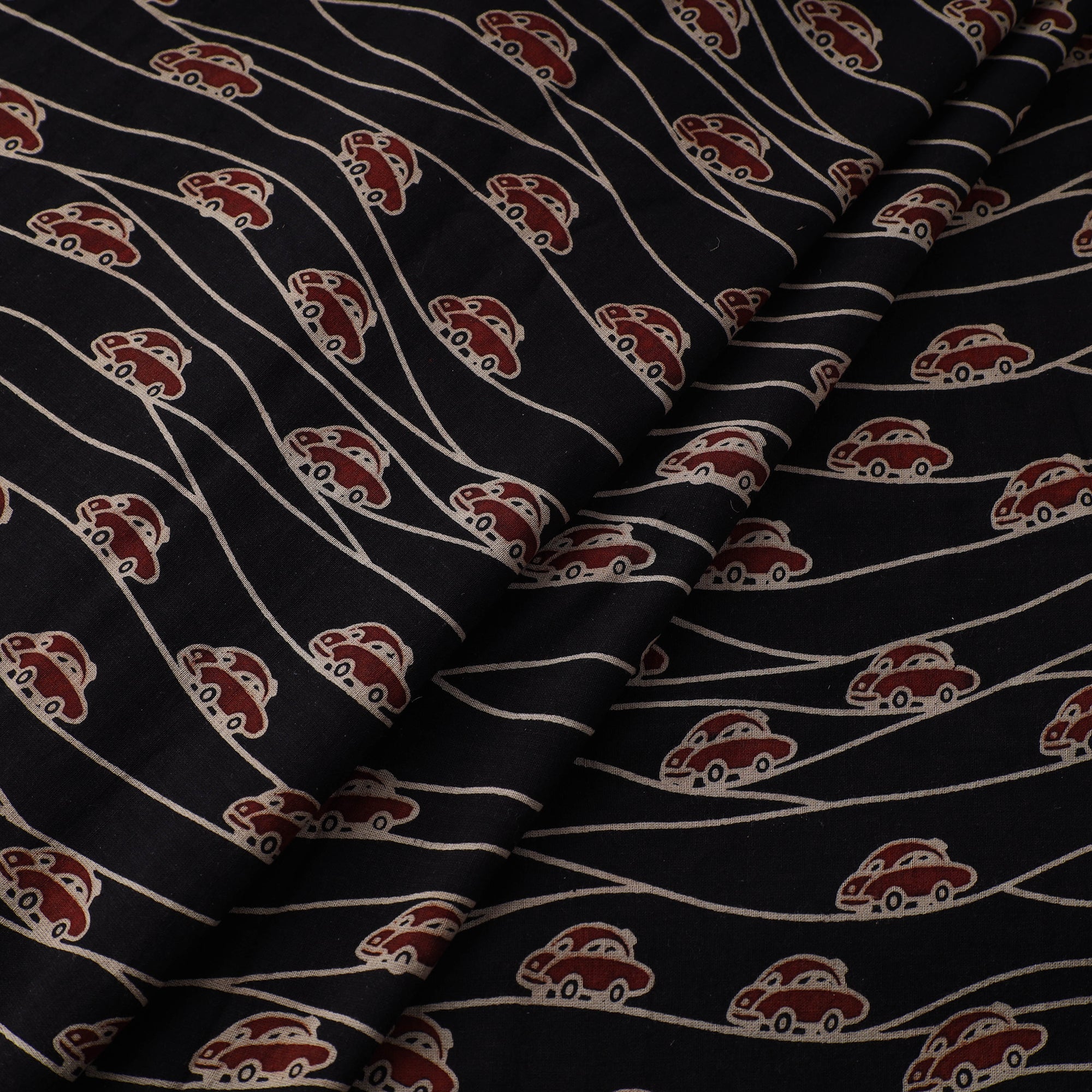 Black - Natural Dyed Cotton Bindaas Block Print Fabric - Country Roads
