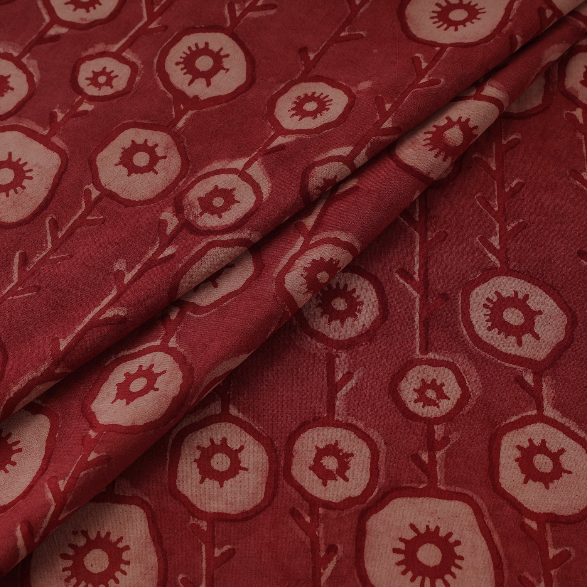 Red - Natural Dyed Cotton Bindaas Hand Block Print Fabric - Hollyhocks