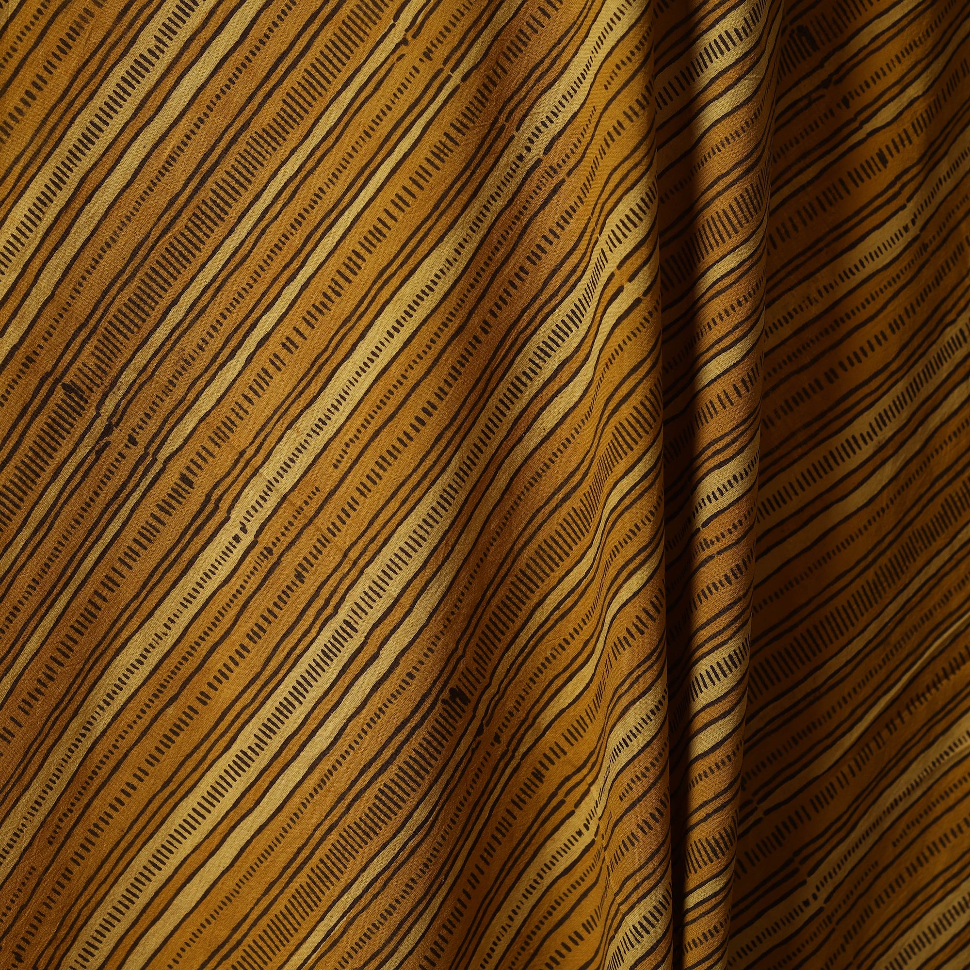 This yellow ajrakh print cotton fabric is hand block-printed in Kutch using natural dyes and age-old techniques passed down through generations. Crafted with precision, each motif reflects Gujarat’s rich textile heritage. Made of breathable cotton, it's ideal for creating kurtas, shirts, dresses, or even elegant home decor accents.