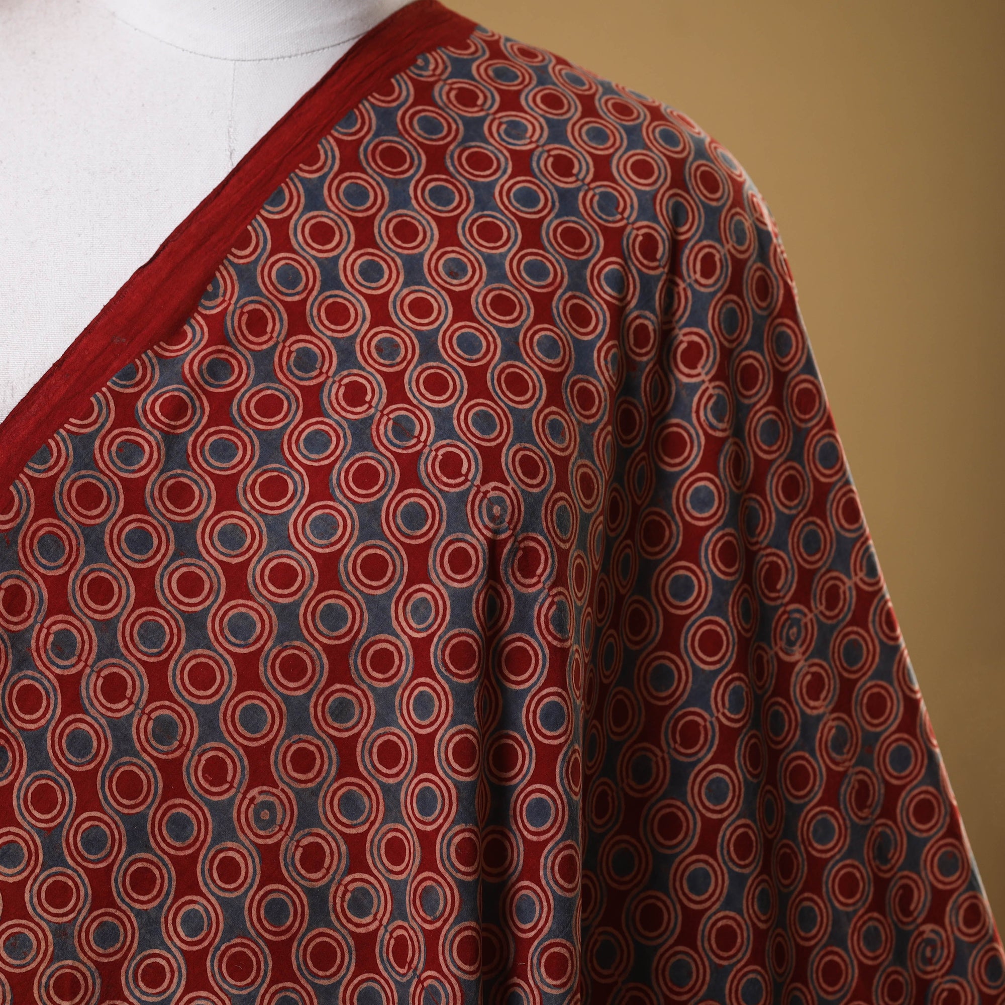 This red ajrakh print cotton fabric is hand block-printed in Kutch using natural dyes and age-old techniques passed down through generations. Crafted with precision, each motif reflects Gujarat’s rich textile heritage. Made of breathable cotton, it's ideal for creating kurtas, shirts, dresses, or even elegant home decor accents.