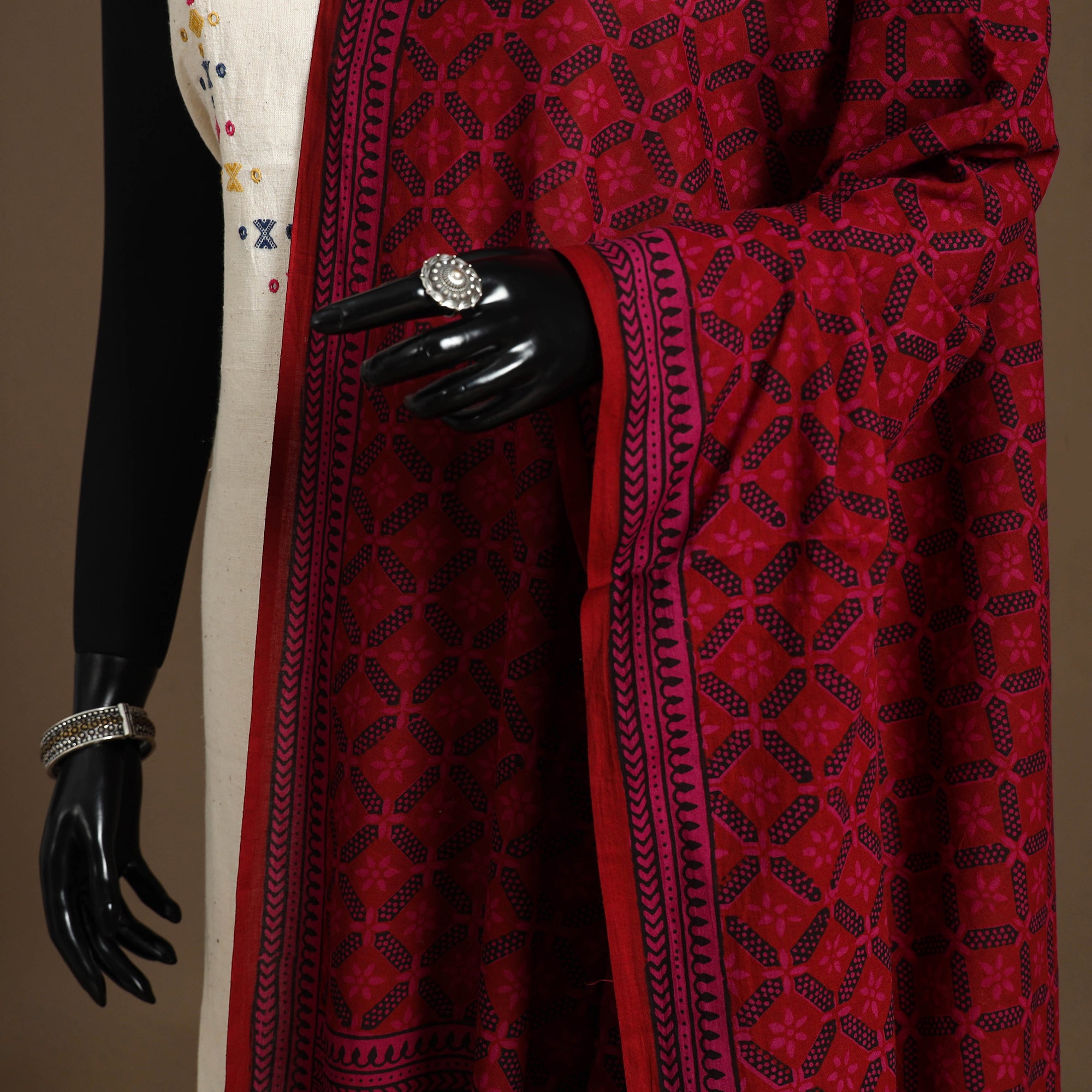• Red Natural Dyed Cotton Block Print Bagh Dupatta