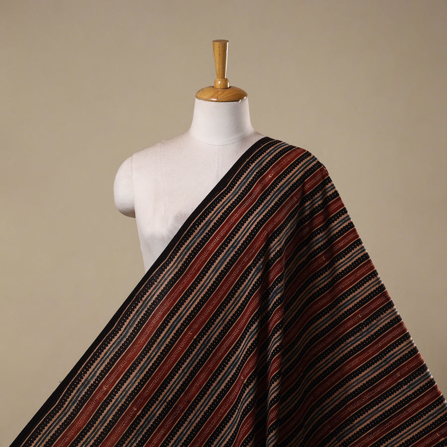 This natural dyed cotton hand block ajrakh print fabric is carefully crafted by artisan Jabbar Khatri from Kutch, Gujarat. Created using traditional Ajrakh techniques and natural dyes, it beautifully showcases rich cultural artistry. Ideal for making outfits or home decor items.