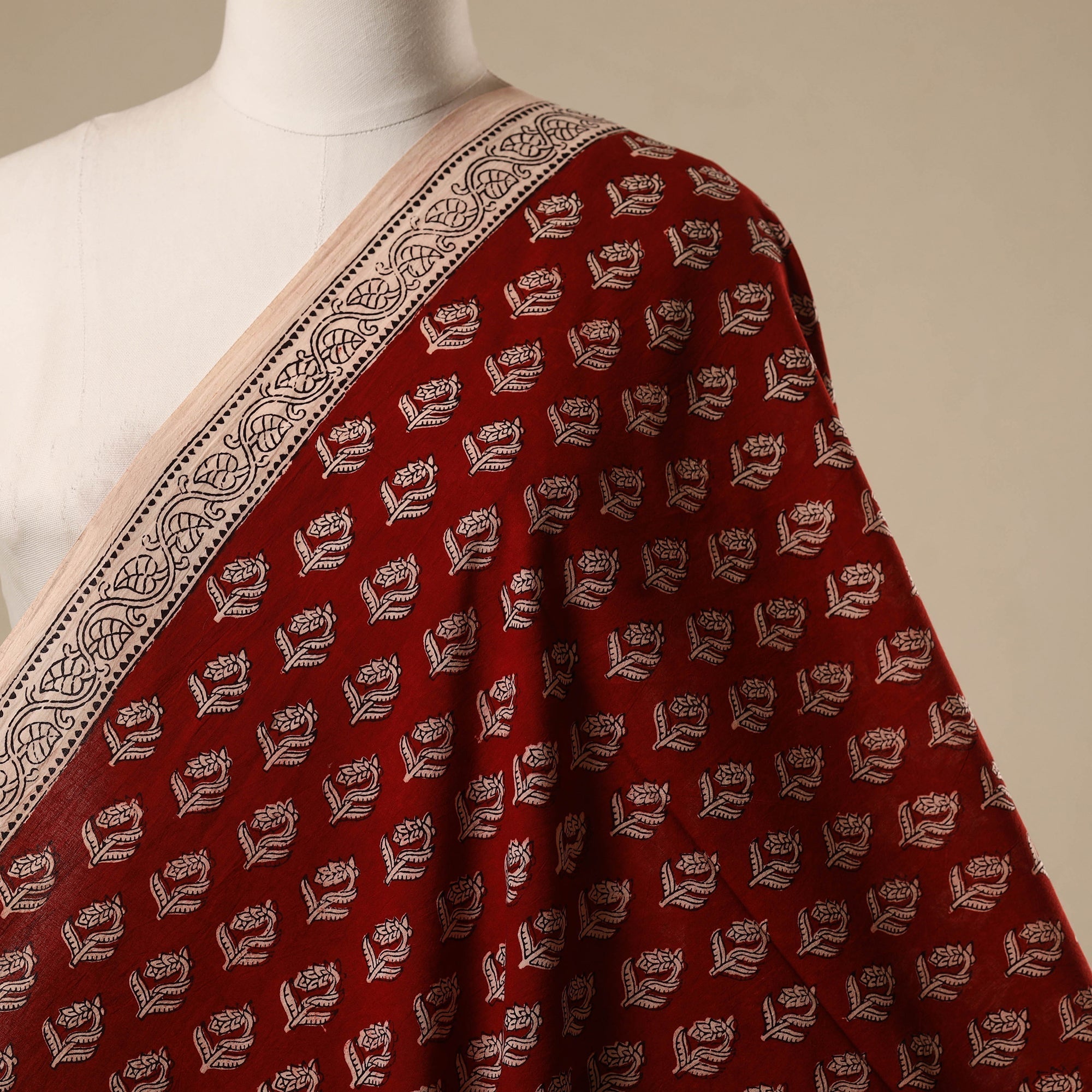 Red bagh hand block printed cotton fabric is crafted by master artisan Mohammed Rafik Ji Khatri from Dhar, Madhya Pradesh. Featuring intricate motifs and natural dyes, it beautifully reflects the charm of traditional Bagh printing. Each design is carefully created using wooden blocks, making it perfect for tailoring, home decor or creative projects.