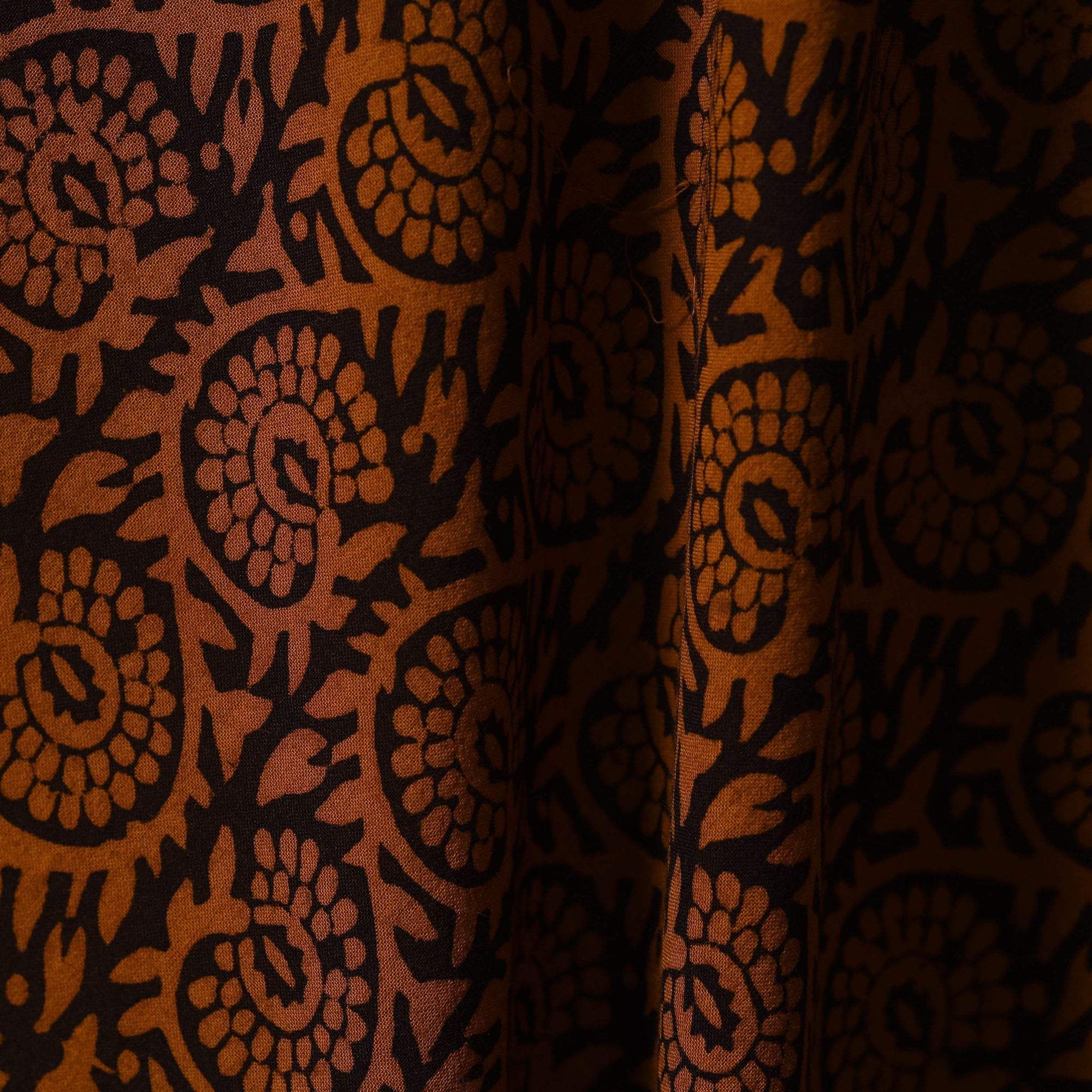 Orange bagh hand block printed cotton fabric is crafted by master artisan Mohammed Rafik Ji Khatri from Dhar, Madhya Pradesh. Featuring intricate motifs and natural dyes, it beautifully reflects the charm of traditional Bagh printing. Each design is carefully created using wooden blocks, making it perfect for tailoring, home decor or creative projects.