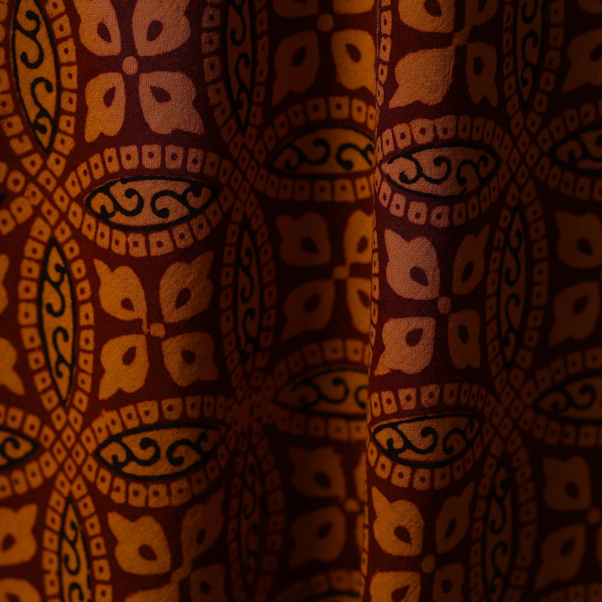 Maroon bagh hand block printed cotton fabric is crafted by master artisan Mohammed Rafik Ji Khatri from Dhar, Madhya Pradesh. Featuring intricate motifs and natural dyes, it beautifully reflects the charm of traditional Bagh printing. Each design is carefully created using wooden blocks, making it perfect for tailoring, home decor or creative projects.