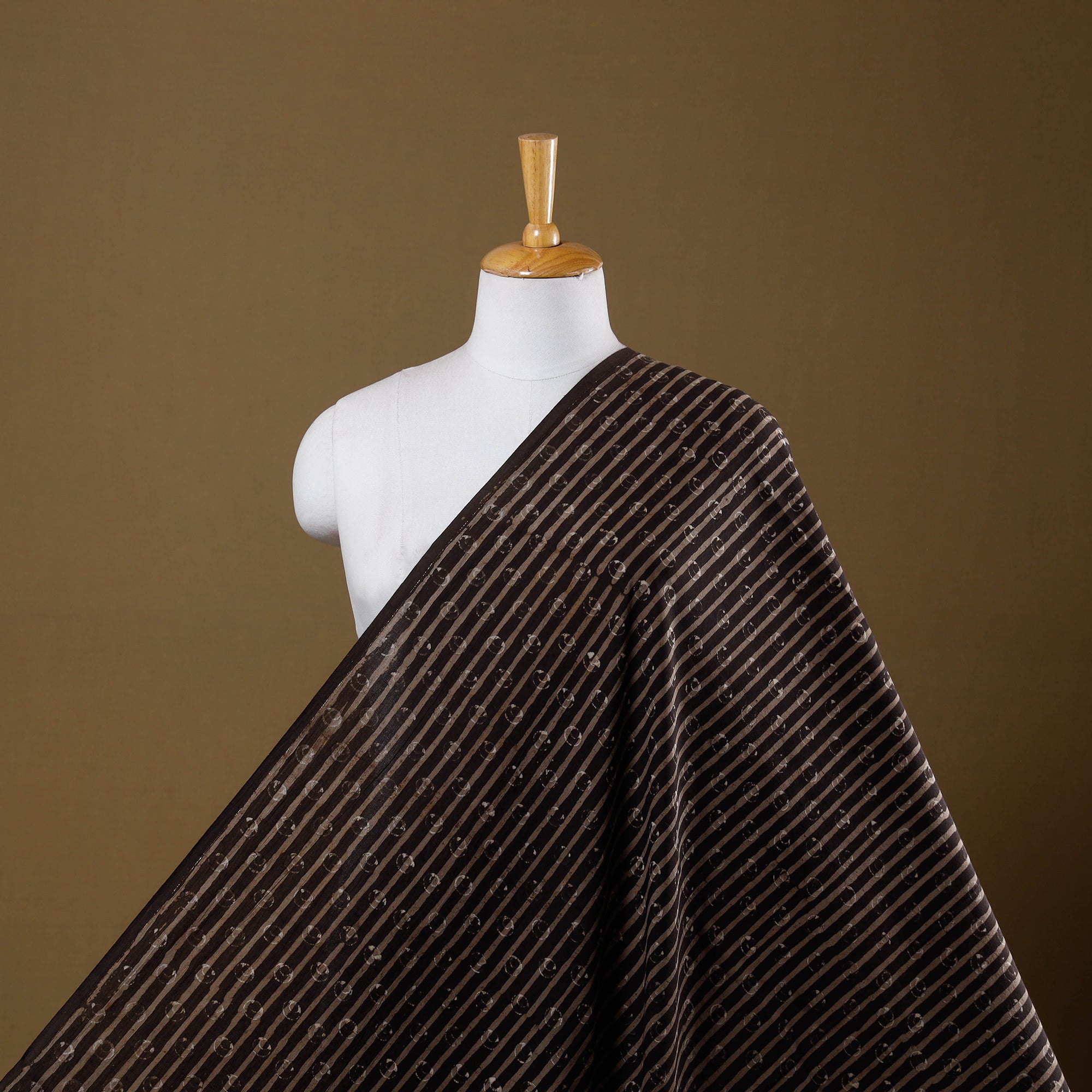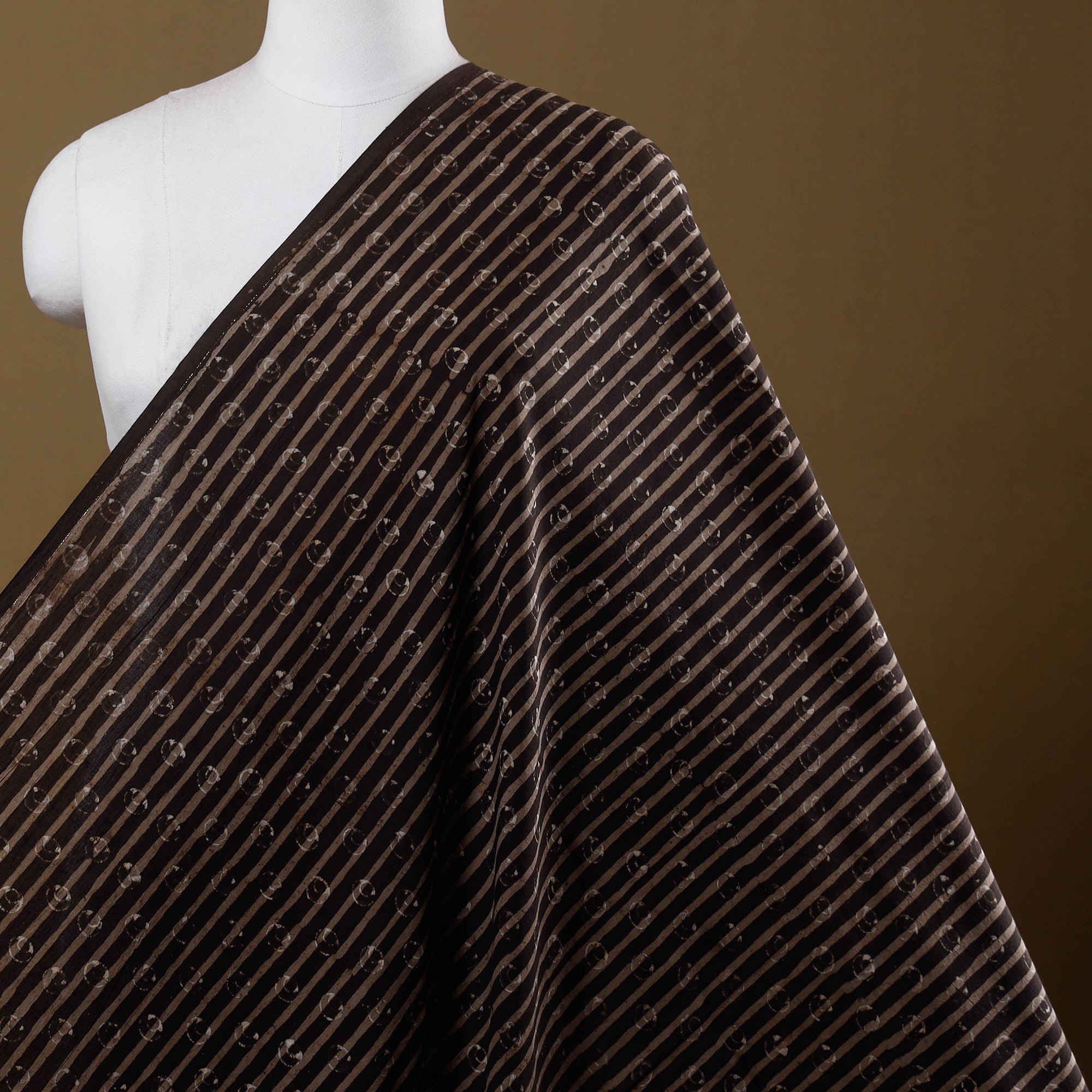 Brown - Natural Dyed Cotton Hand Block Pipad Print Fabric 02