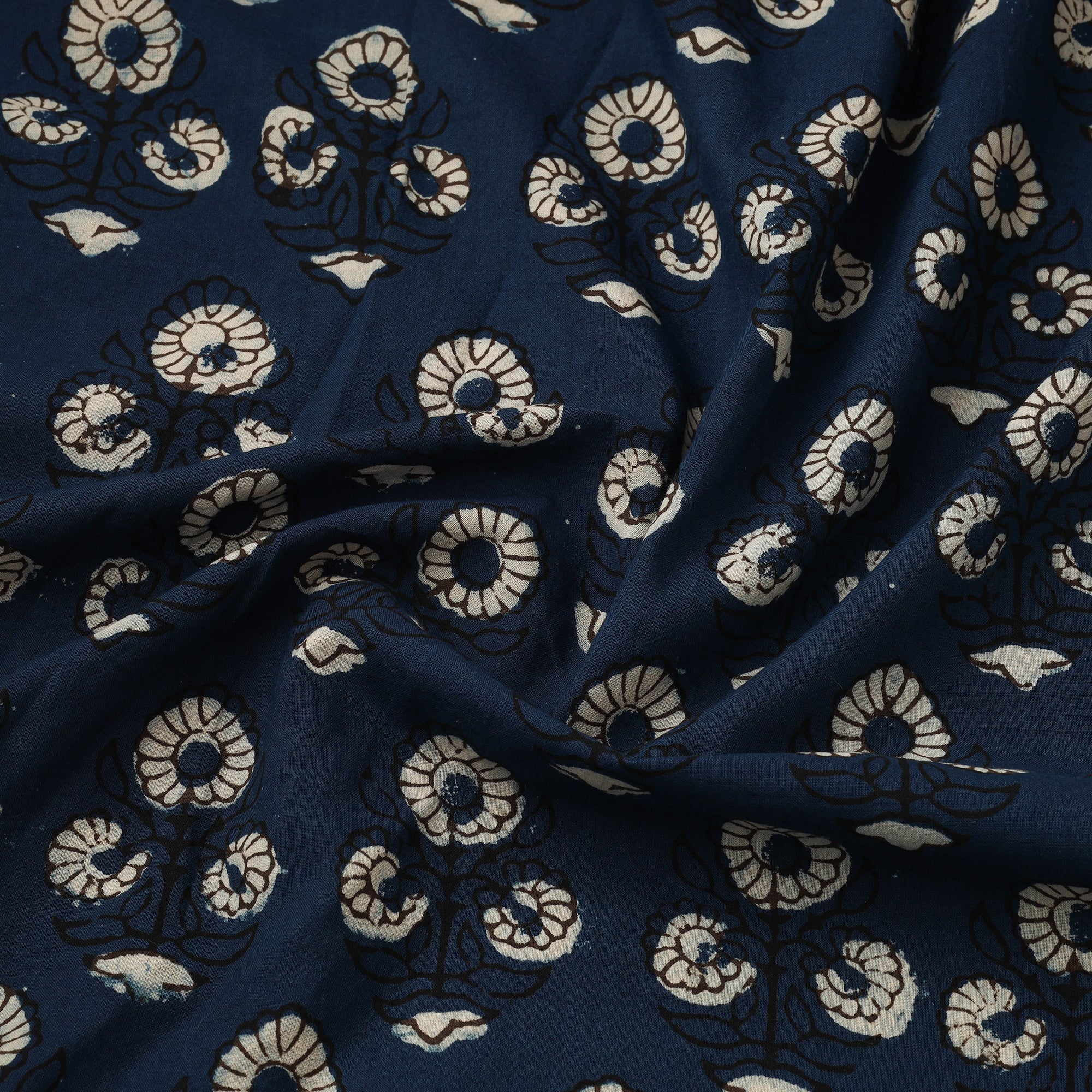 Blue - Natural Dyed Cotton Hand Block Pipad Print Fabric 07