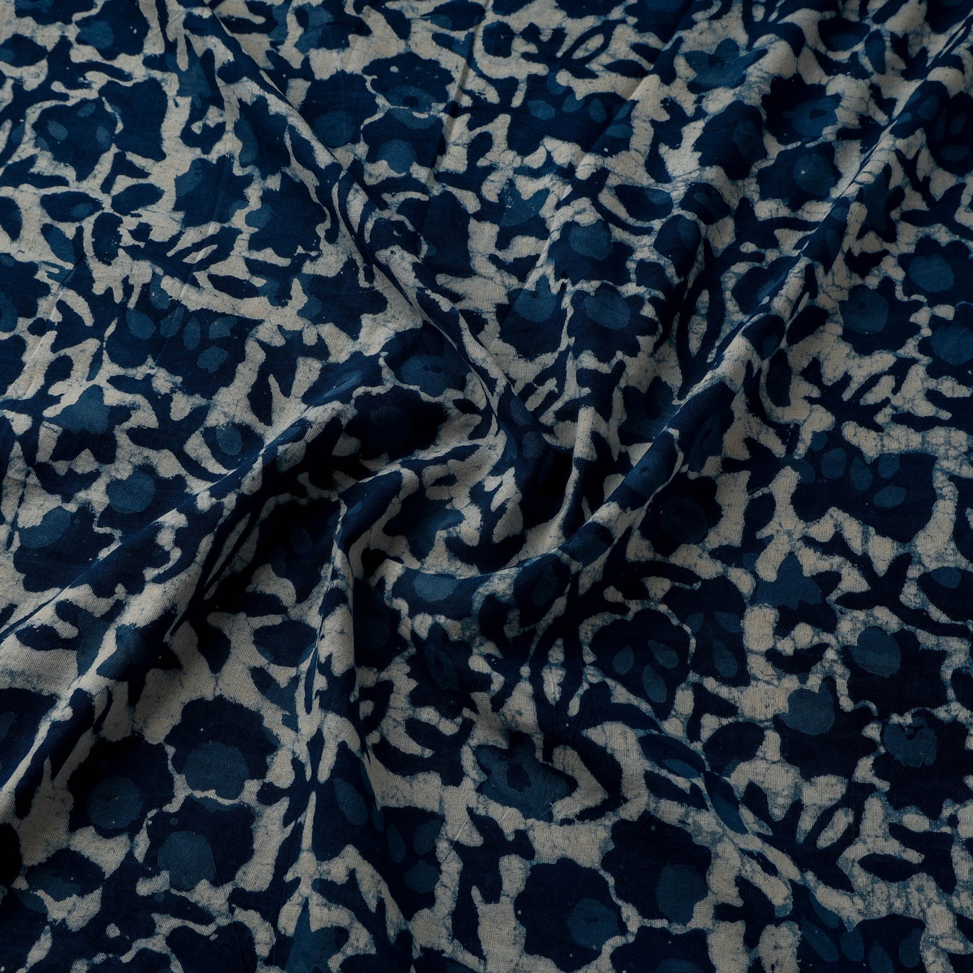 Indigo hand block bagru dabu print fabric comes from the village of Bagru in Rajasthan, where artisans have practiced the Dabu mud-resist printing technique for over 400–450 years. Printed on cotton using natural dyes, the fabric is created by applying a hand-prepared mud resist with carved wooden blocks. After dyeing, the resist is washed away to reveal distinct patterns. Each piece reflects the skill, experience, and careful craftsmanship of trained artisans. This fabric is ideal for garments, home decor, and creative projects.