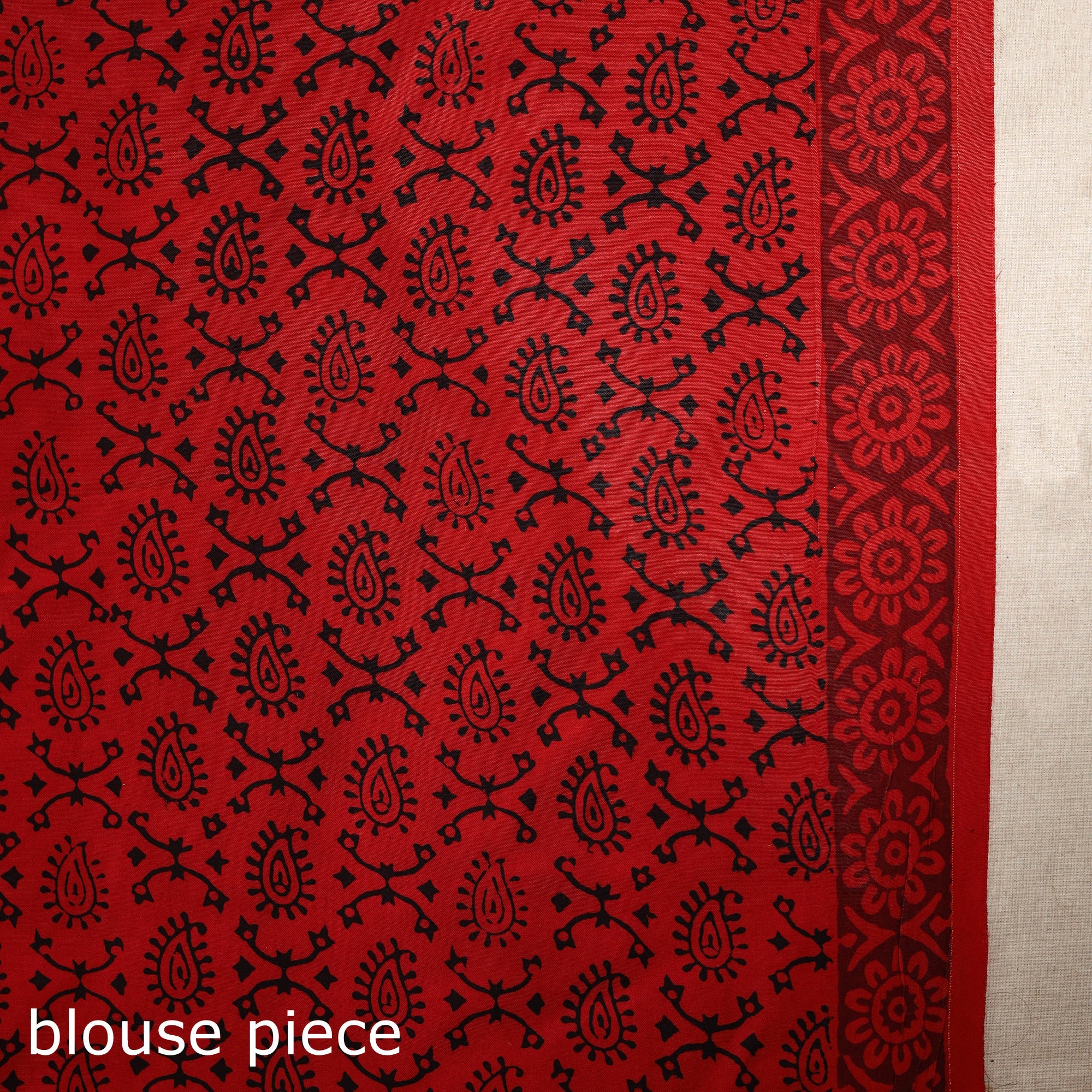 Hand block-printed red bagh dola silk saree. Made by skilled artisans, this saree features intricate patterns and rich colours created using natural dyes. Each piece reflects the traditional Bagh printing style, a craft that originates from the Dhar district of Madhya Pradesh. Its elegant appearance and handcrafted charm make it a perfect choice for festive occasions, everyday wear, or even as a thoughtful gift.