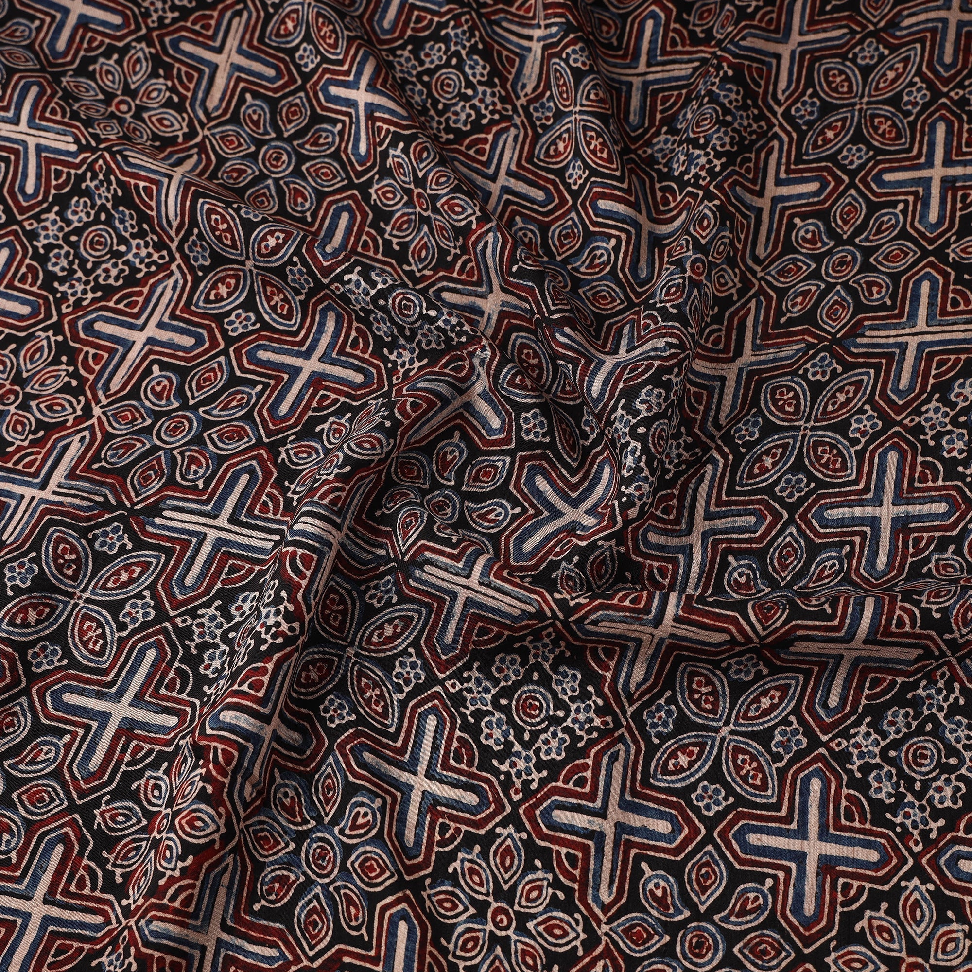 Black - Natural Dyed Dola Silk Hand Block Ajrakh Print Fabric 03