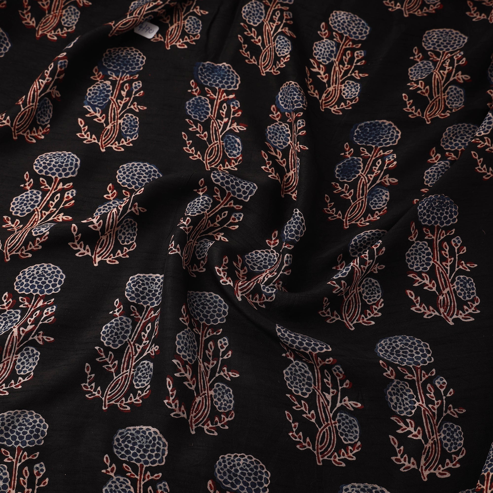 Black - Natural Dyed Dola Silk Hand Block Ajrakh Print Fabric 07