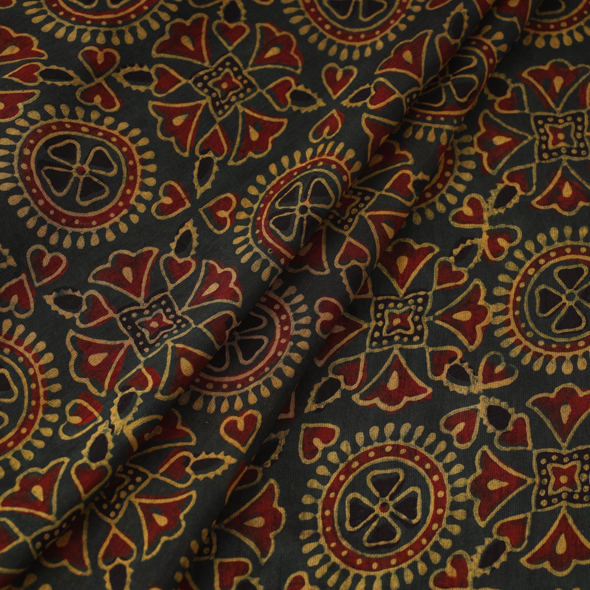 Green - Natural Dyed Dola Silk Hand Block Ajrakh Print Fabric 17