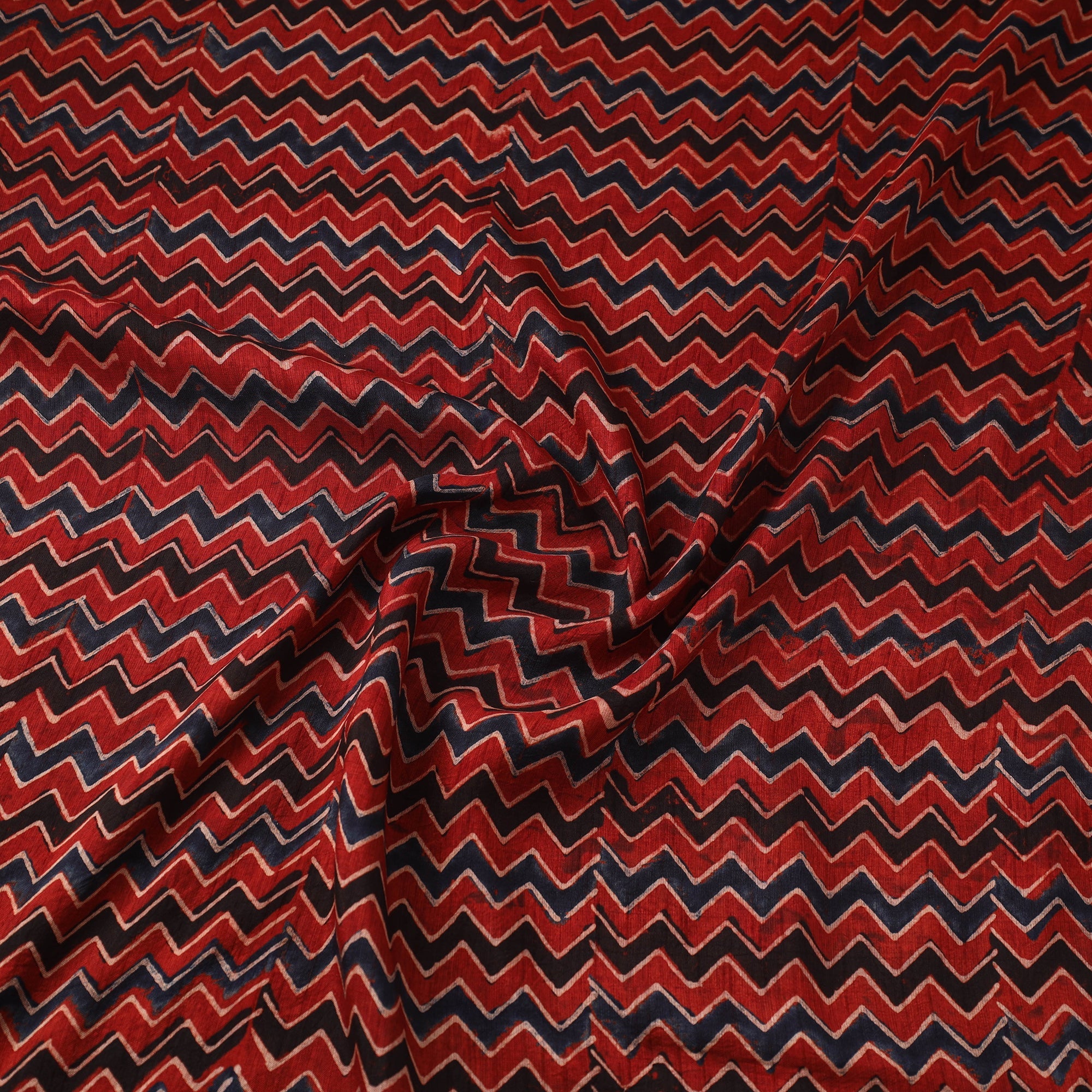 Red - Natural Dyed Dola Silk Hand Block Ajrakh Print Fabric 30