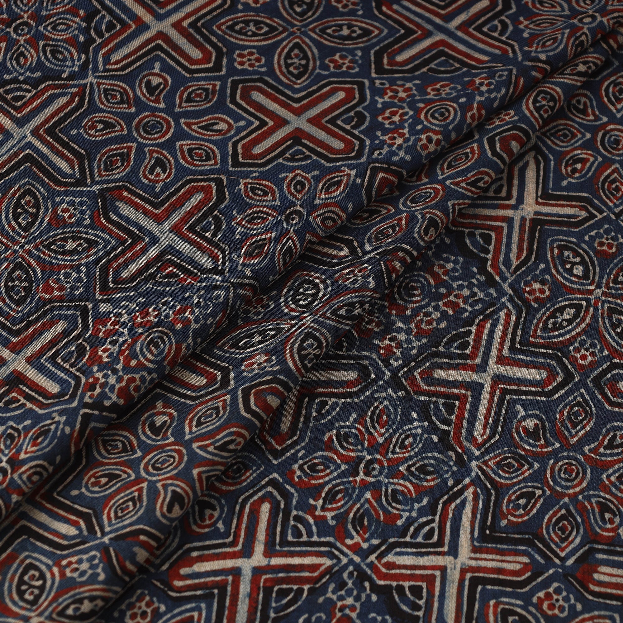 Blue - Natural Dyed Dola Silk Hand Block Ajrakh Print Fabric 37