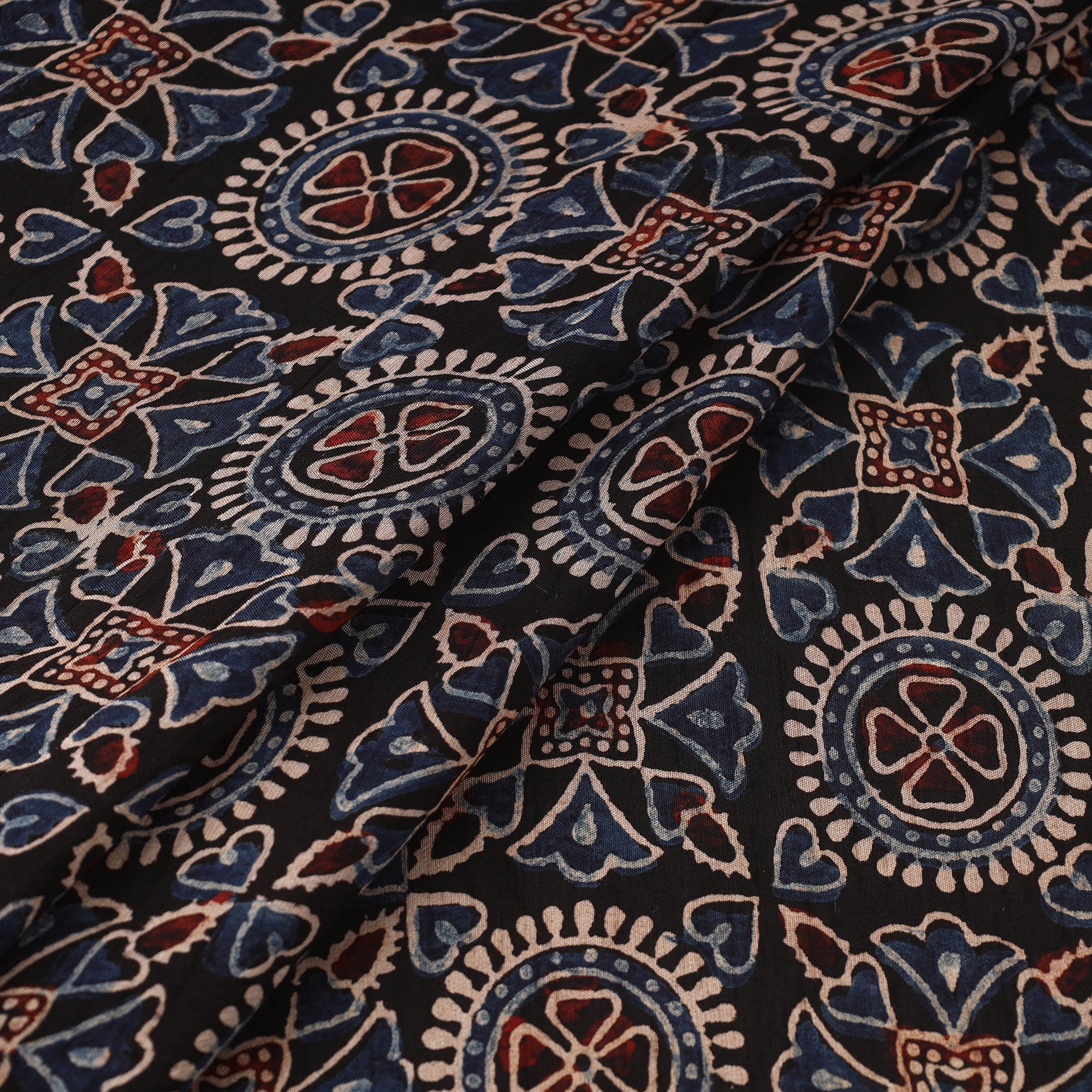 Black - Natural Dyed Dola Silk Hand Block Ajrakh Print Fabric 40