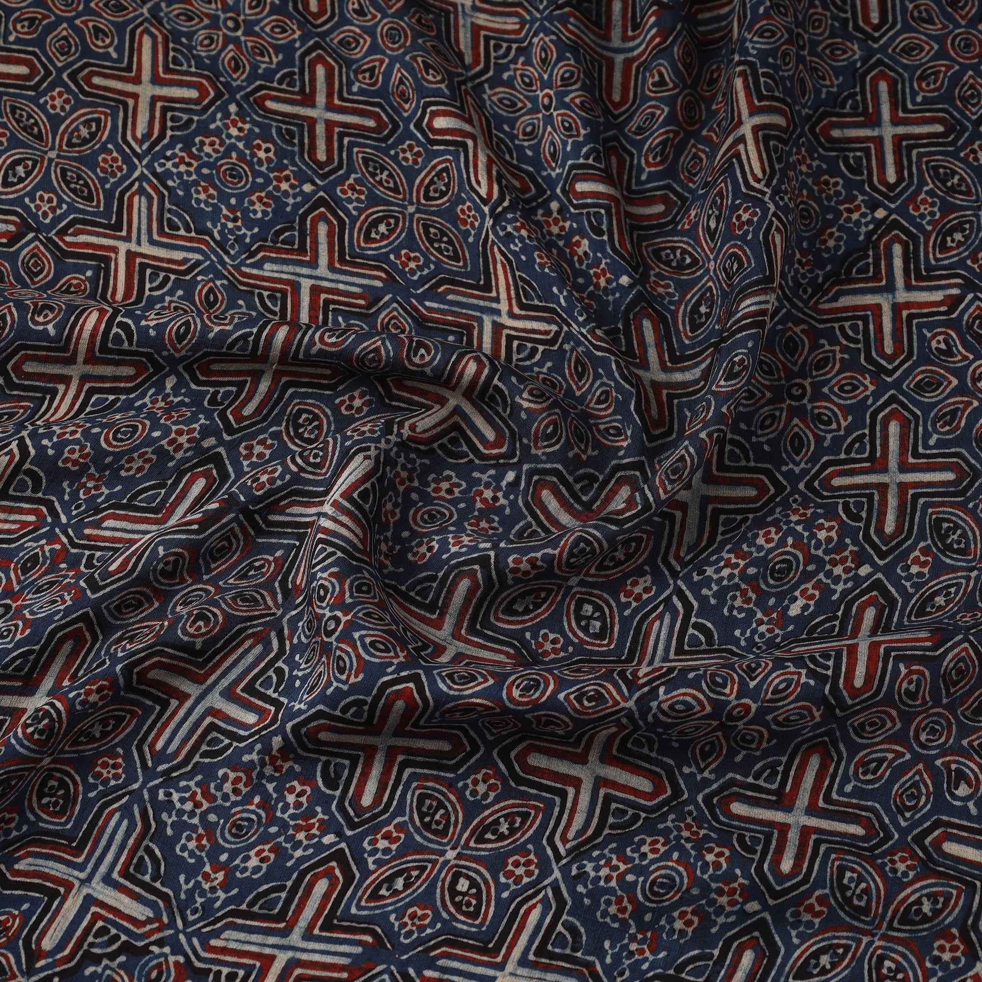 Blue - Natural Dyed Dola Silk Hand Block Ajrakh Print Fabric 41