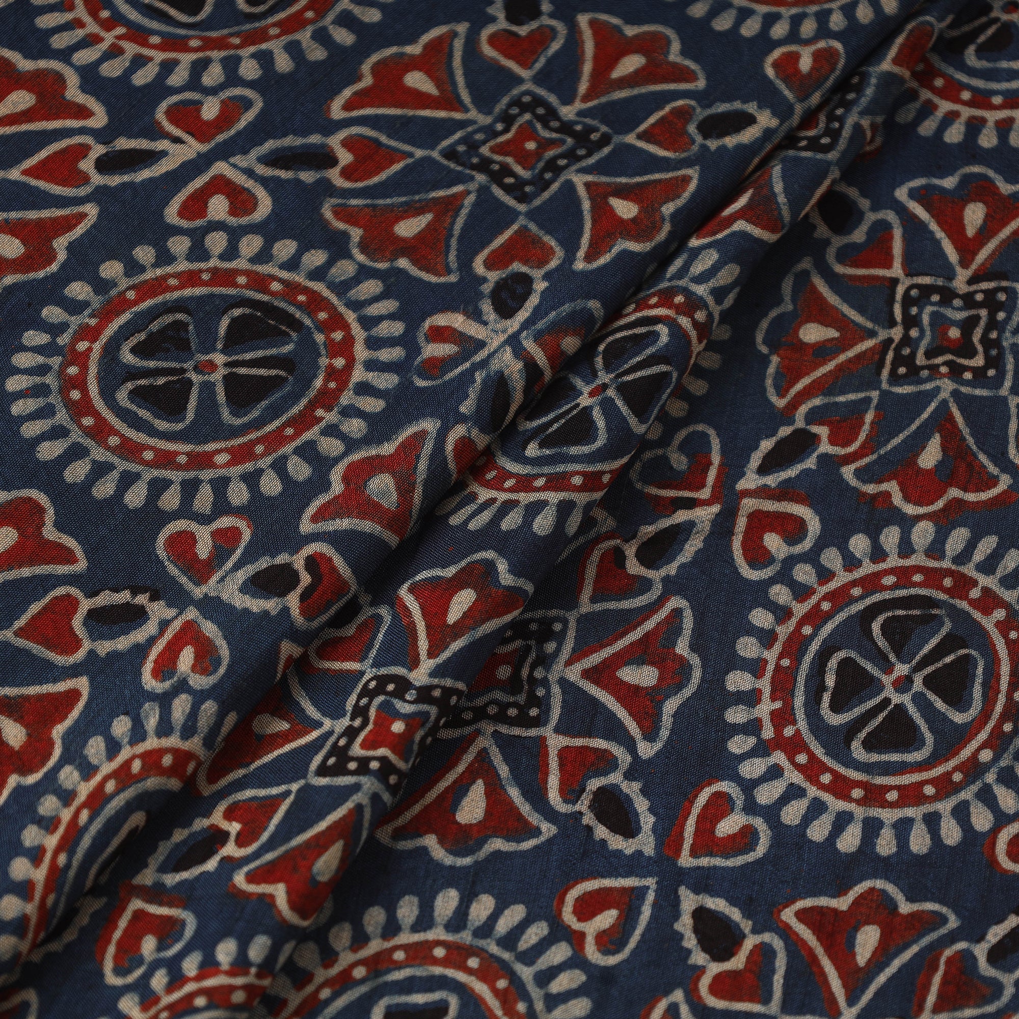 Blue - Natural Dyed Dola Silk Hand Block Ajrakh Print Fabric 42