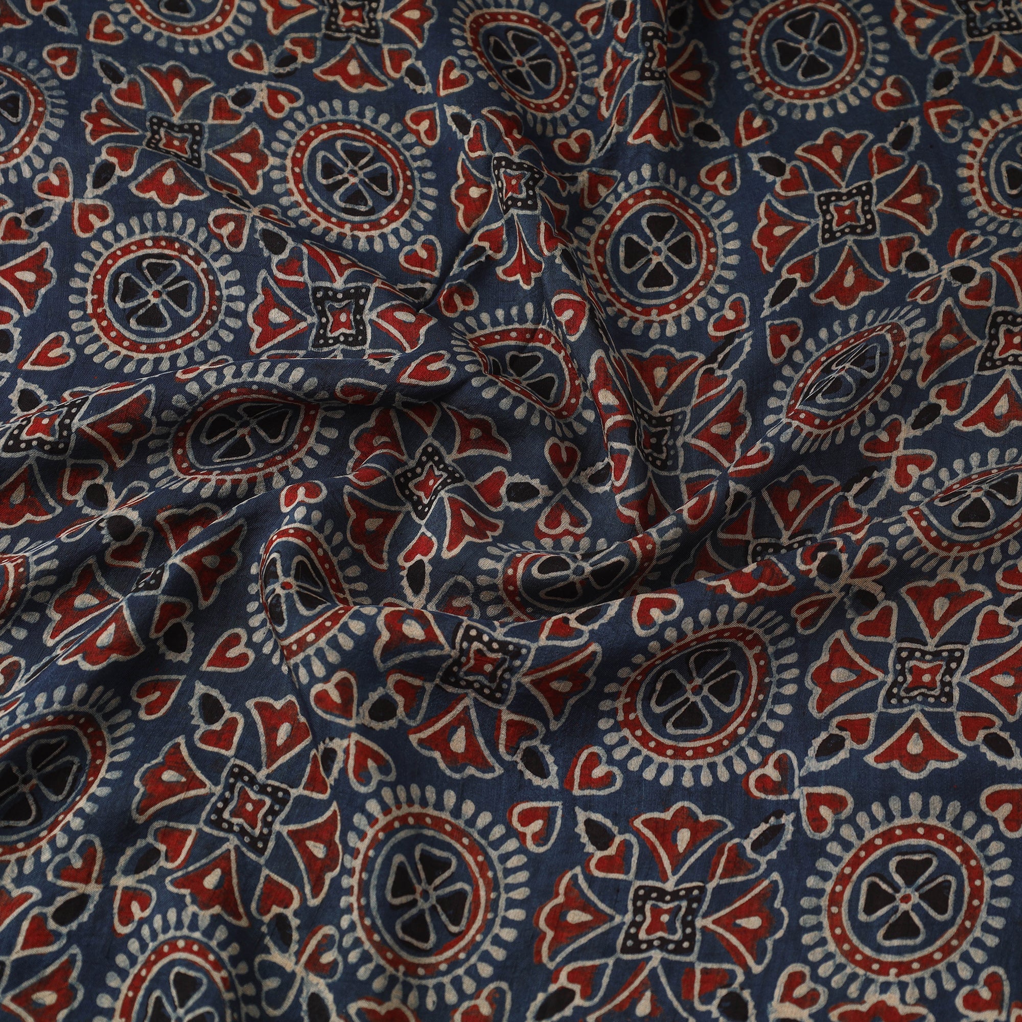 Ajrakh is a well-known traditional vegetable dyeing that resists block-printing techniques on cloth. Originated in Kutch, It is nearly around 4,500 years old practised by Khatri community of Kutch and Sikh.