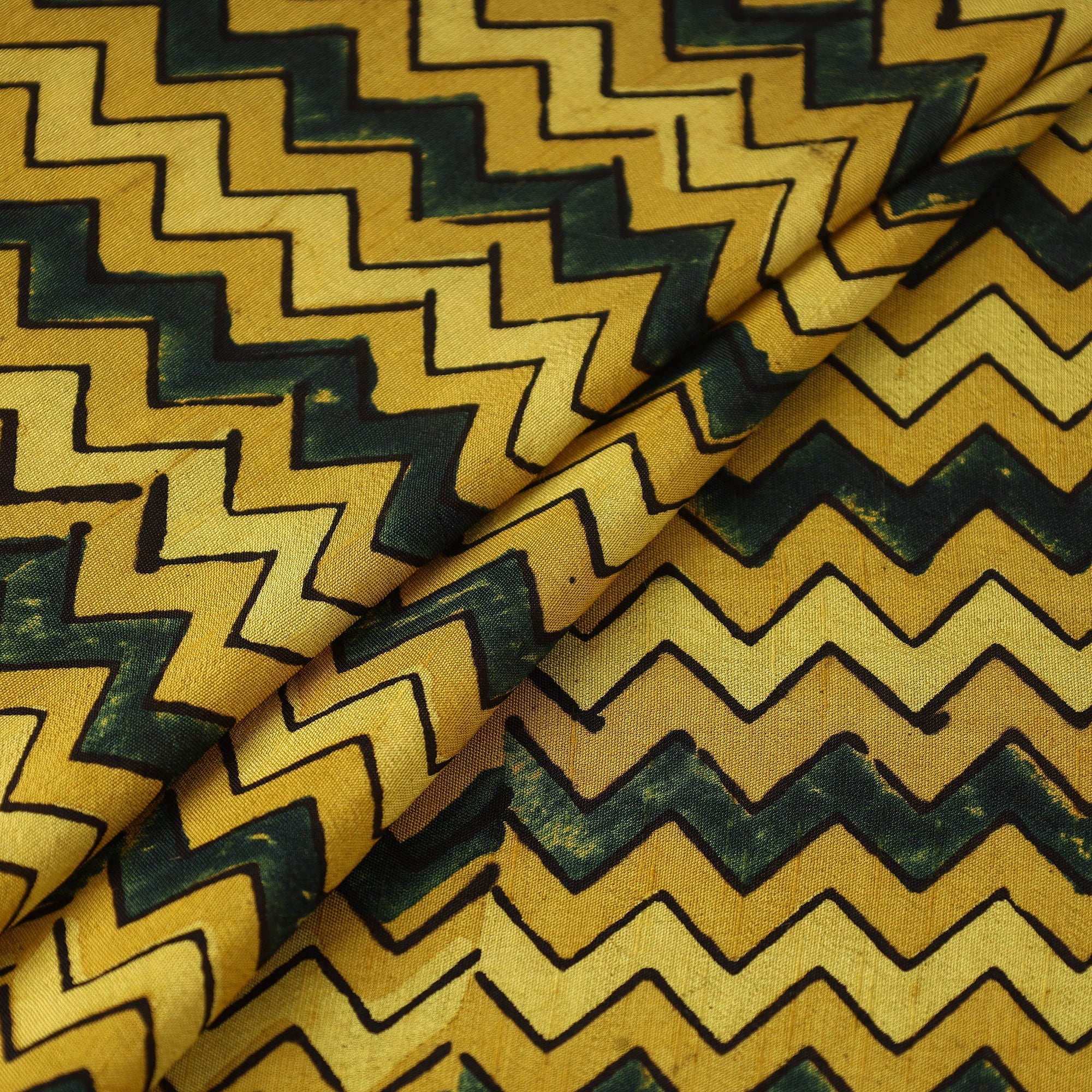 Yellow - Natural Dyed Dola Silk Hand Block Ajrakh Print Fabric 63