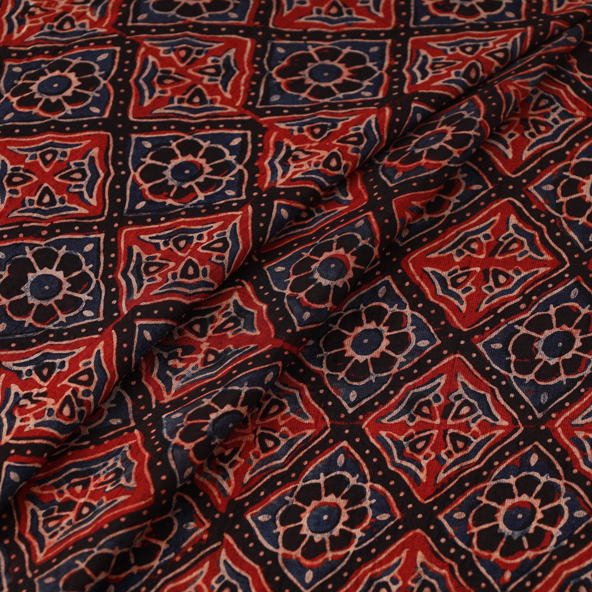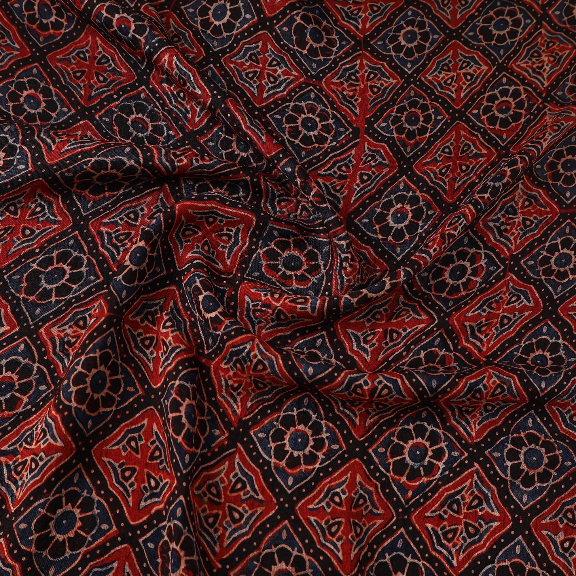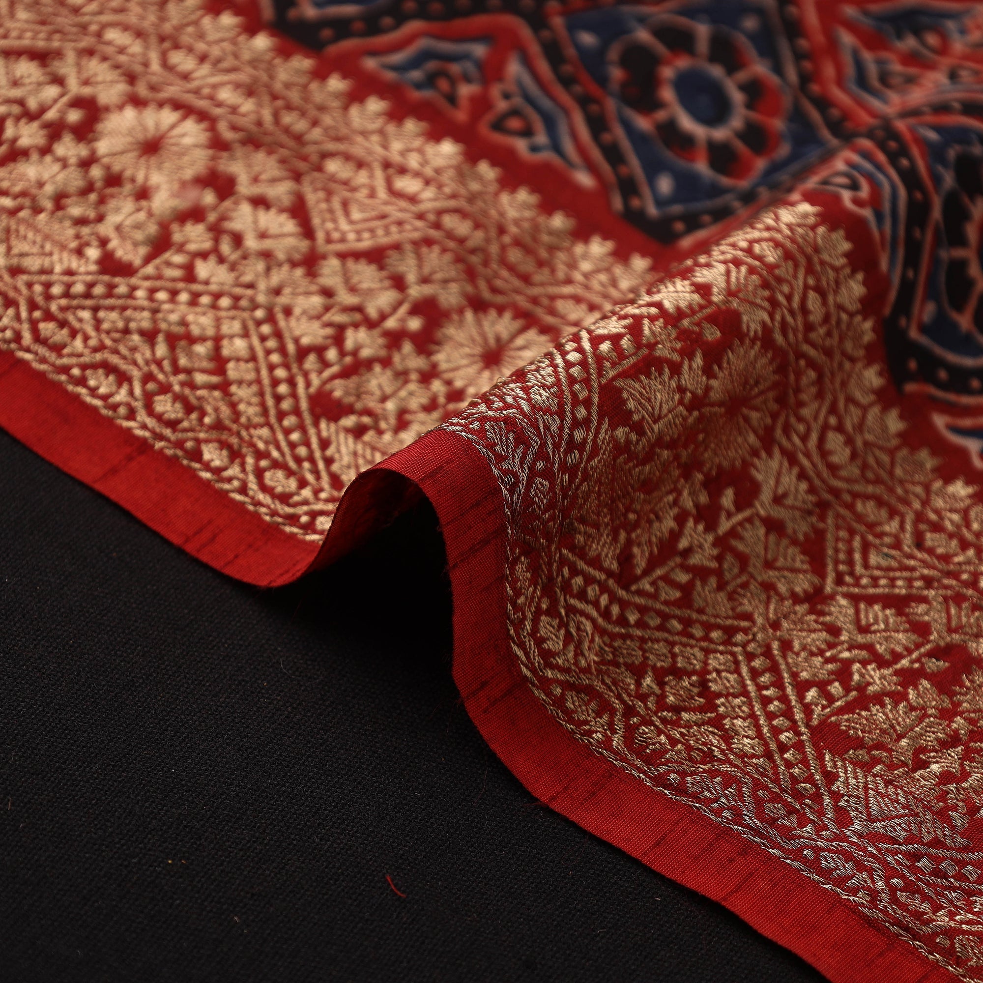 Red - Natural Dyed Dola Silk Hand Block Ajrakh Print Fabric 66