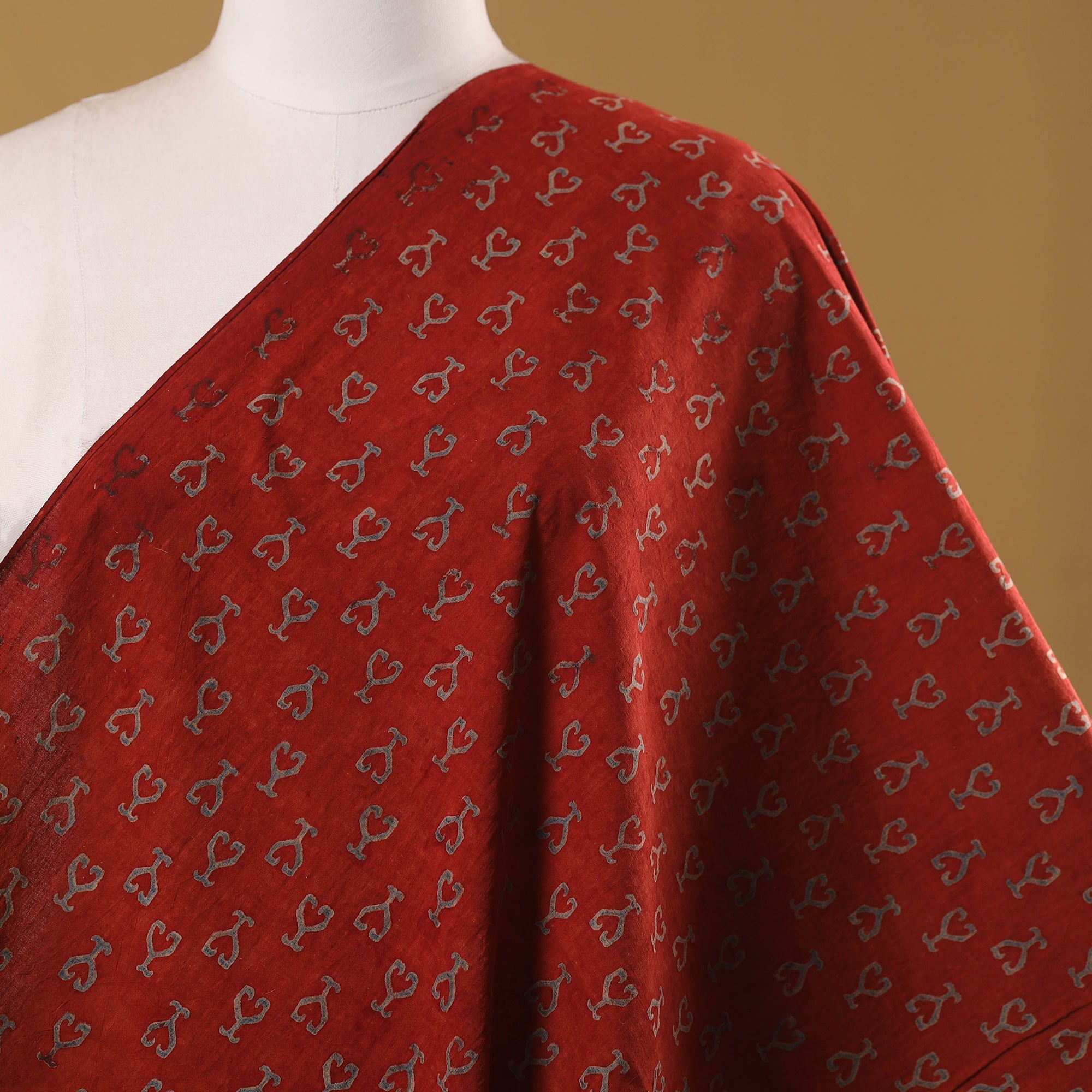 Red ajrakh fabric crafted using natural-dyeing and resist block-printing techniques. This ancient craft is estimated to be around 4,500 years old. The Ajrakh artisans in India originally migrated from Sindh to the Kutch region of Gujarat and to Barmer in Rajasthan. Ajrakh is also the traditional attire of the Maldhari pastoral community of Bhuj. The process is long and detailed, involving multiple stages where each layer of colour is printed only after a resting period, allowing the cloth to absorb the dye fully. Made of breathable cotton it is ideal for creating kurtas, shirts, dresses or even home decor items.