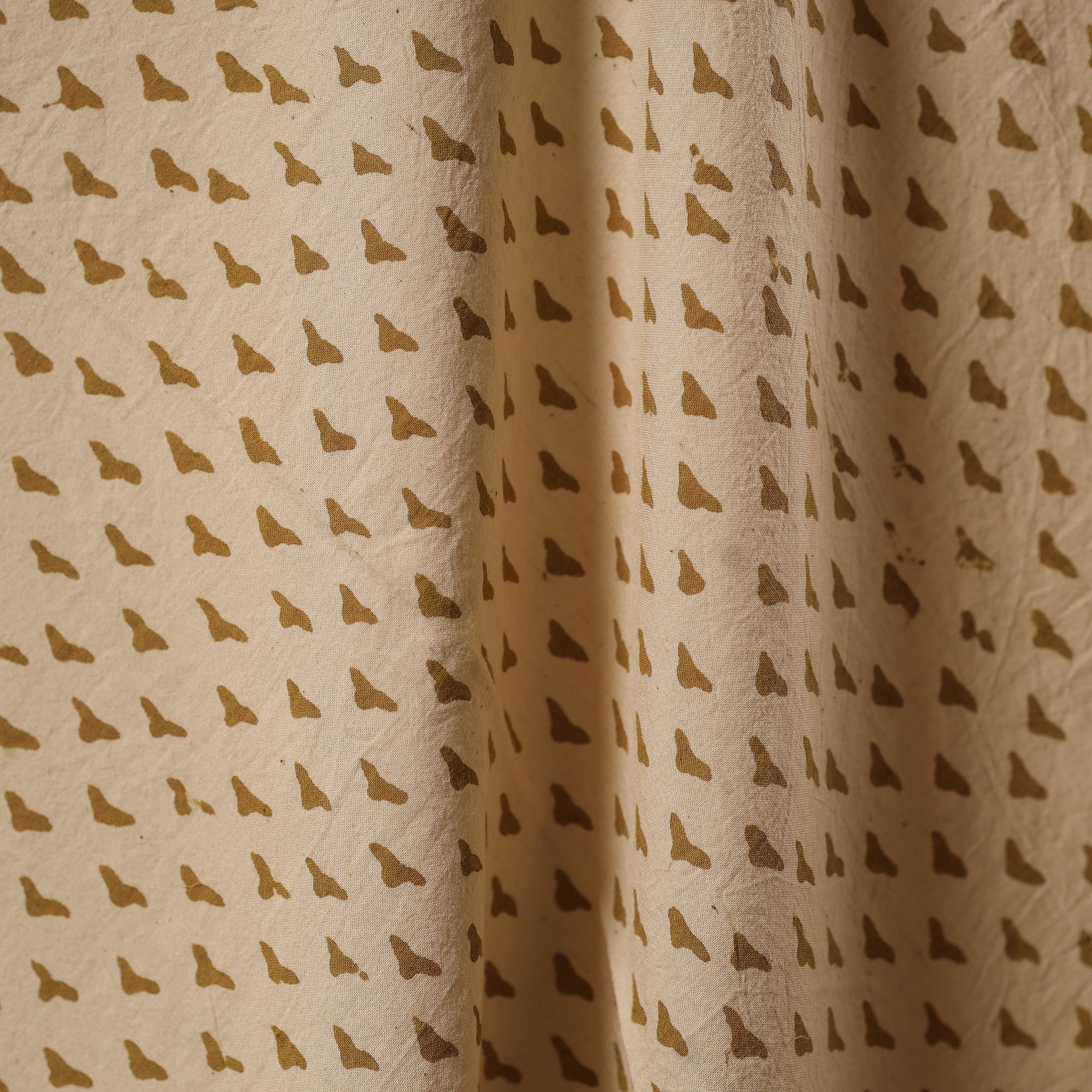 Beige ajrakh fabric crafted using natural-dyeing and resist block-printing techniques. This ancient craft is estimated to be around 4,500 years old. The Ajrakh artisans in India originally migrated from Sindh to the Kutch region of Gujarat and to Barmer in Rajasthan. Ajrakh is also the traditional attire of the Maldhari pastoral community of Bhuj. The process is long and detailed, involving multiple stages where each layer of colour is printed only after a resting period, allowing the cloth to absorb the dye fully. Made of breathable cotton it is ideal for creating kurtas, shirts, dresses or even home decor items.