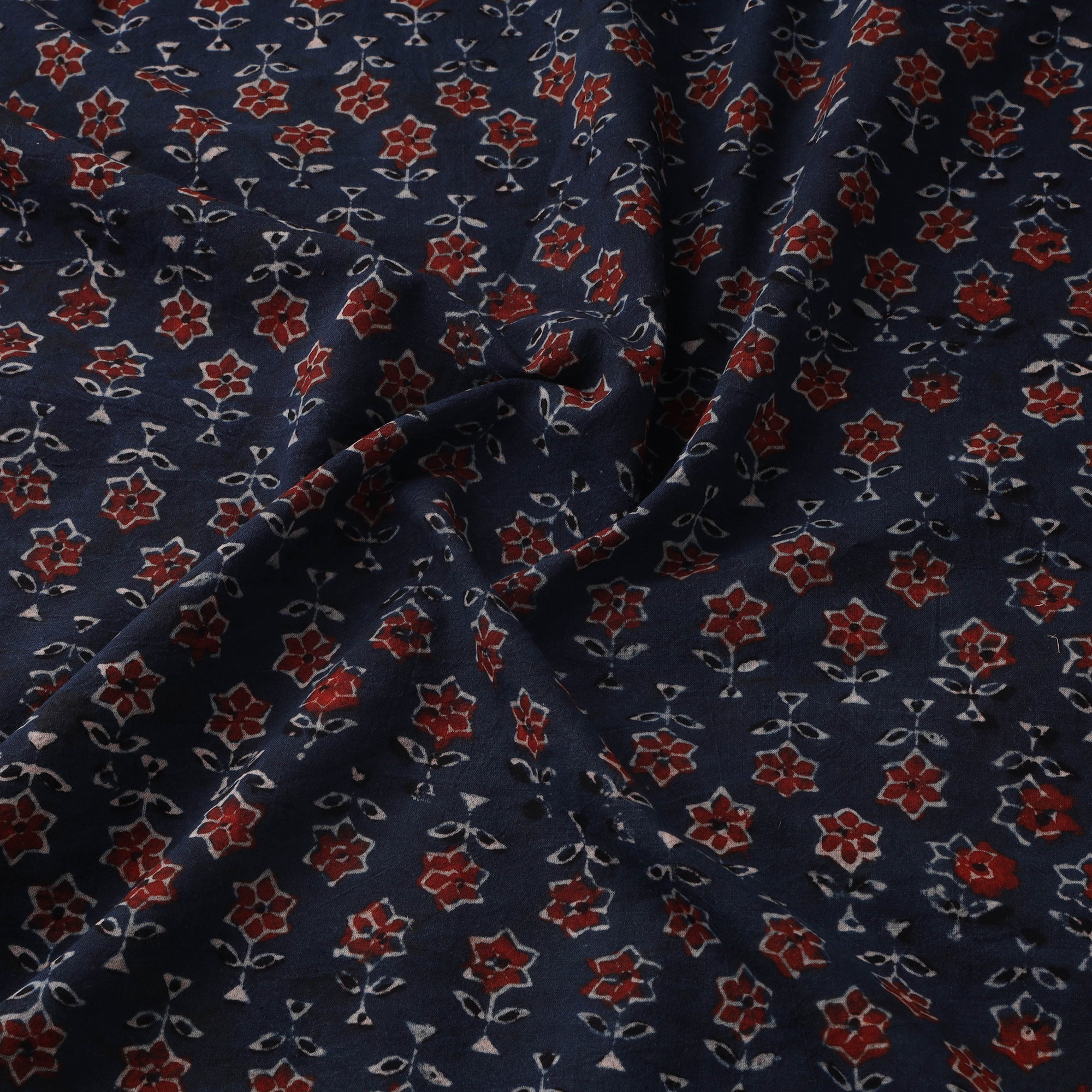 • Natural Dyed Hand Block Print Cotton Ajrakh Fabric 02