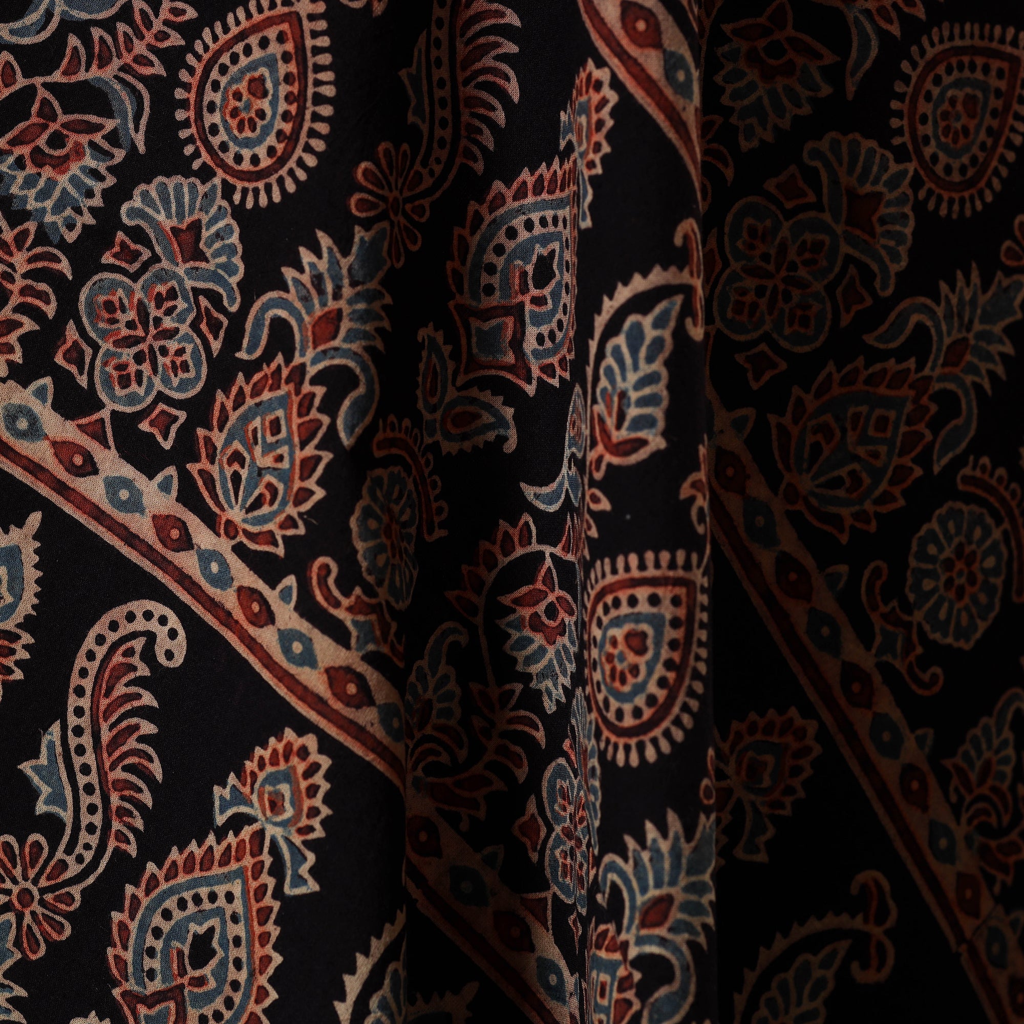 Black - Natural Dyed Hand Block Print Cotton Ajrakh Fabric 02