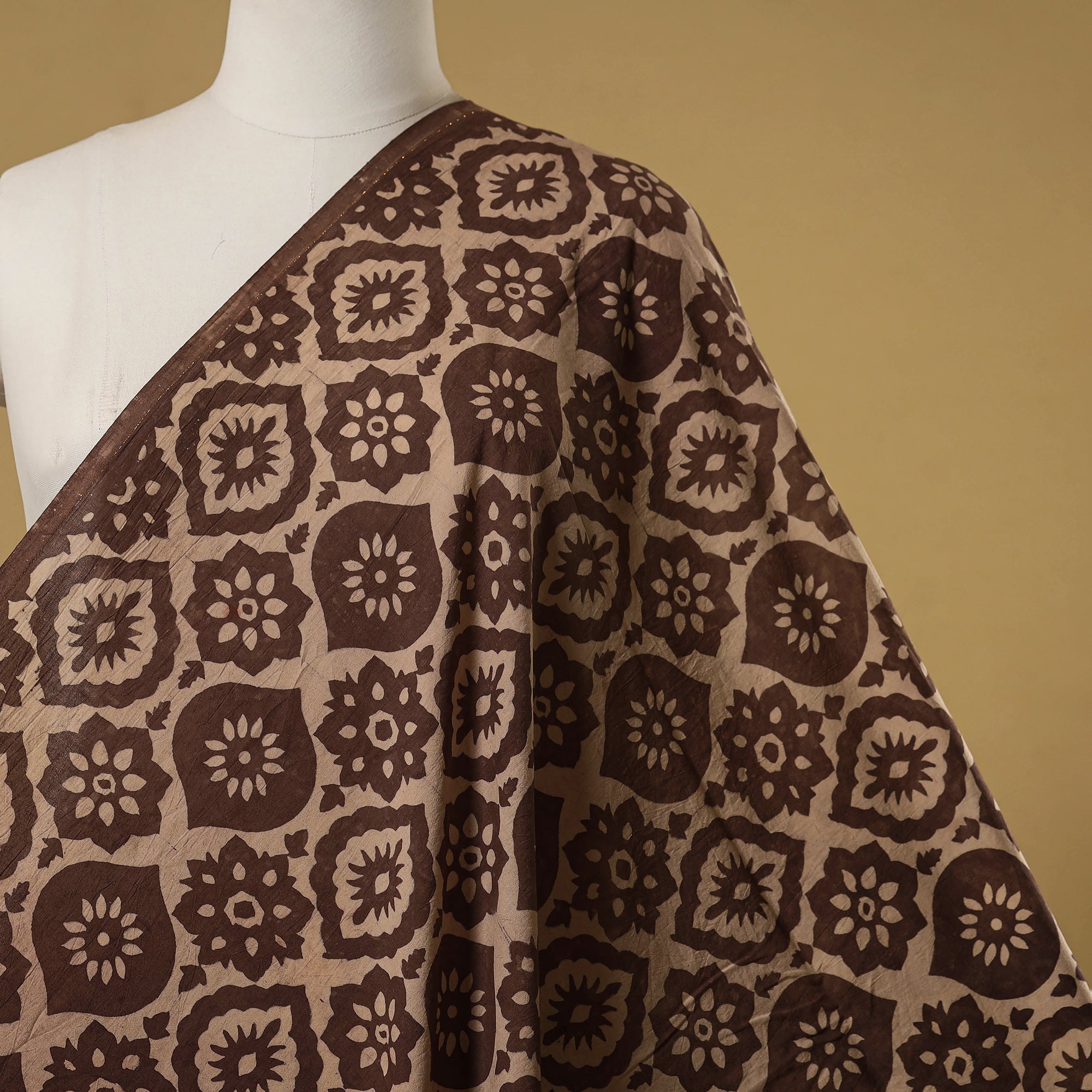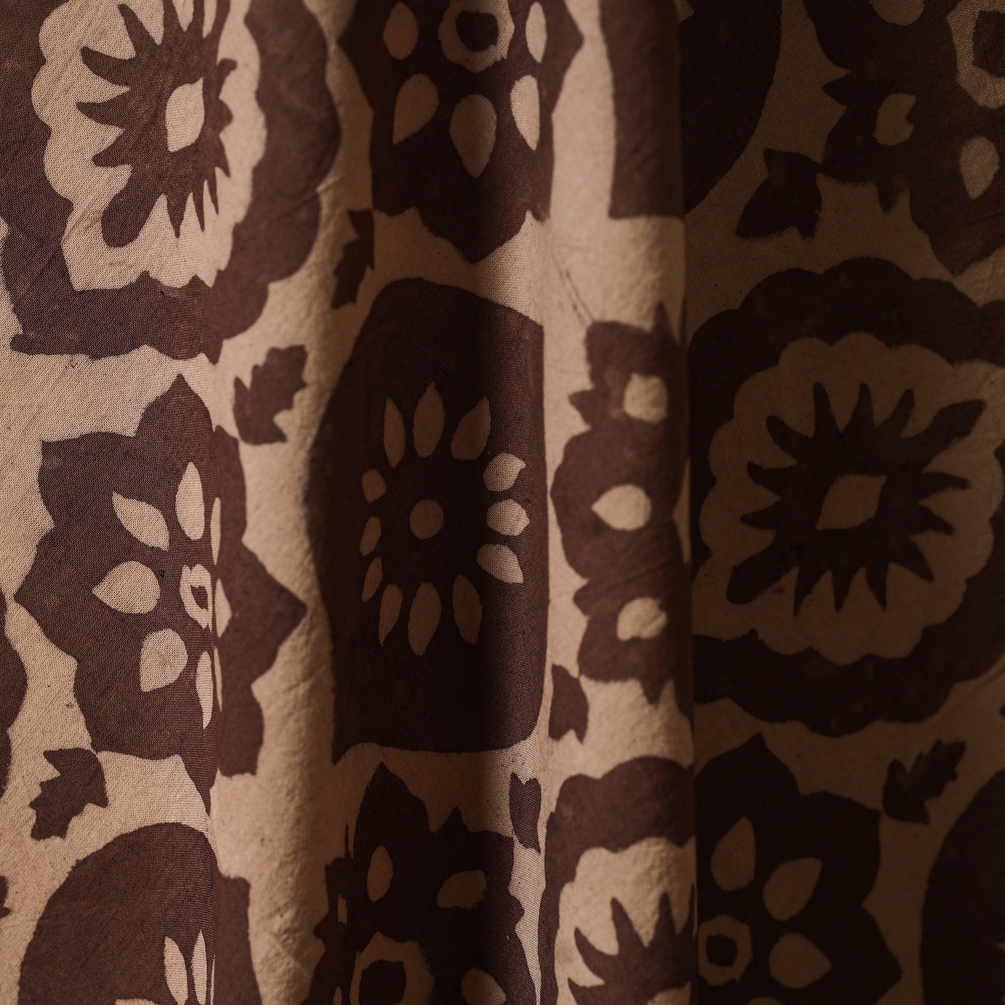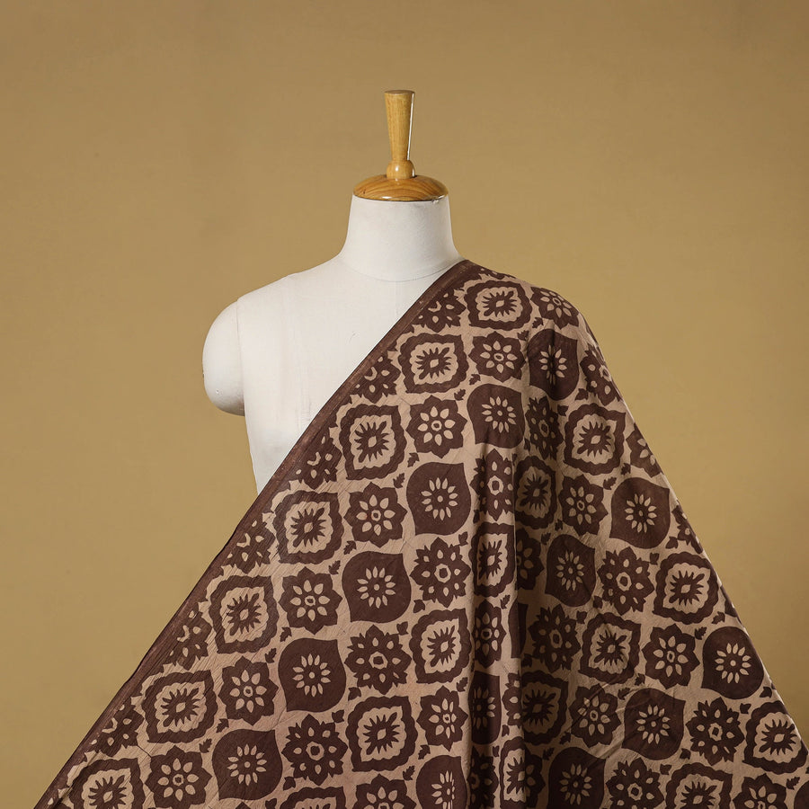 Brown pure cotton ajrakh fabric by Riyaz Abdulmajid Khatri is hand block-printed in Kutch using natural dyes and age-old techniques passed down through generations. Crafted with precision, each motif reflects Gujarat’s rich textile heritage. Made of breathable cotton, it's ideal for creating kurtas, shirts, dresses or even elegant home decor accents.