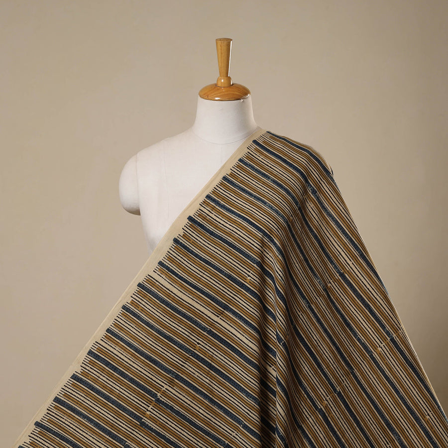Ajrakh cotton fabric from Kutch, Gujarat, is block printed by artisan A. Jabbar Haji Zakariya Khatri using traditional techniques and natural dyes. Renowned for its rich hues and intricate patterns, it beautifully blends heritage with modern appeal. Crafted on breathable cotton, it’s perfect for creating kurtas, dresses, shirts or home decor pieces.