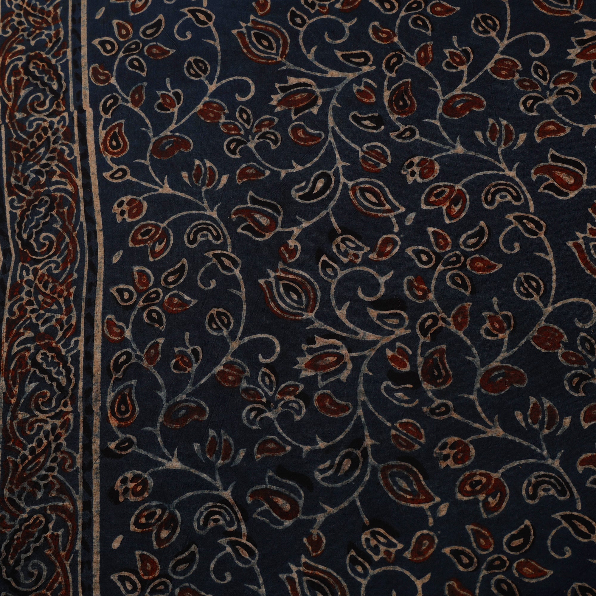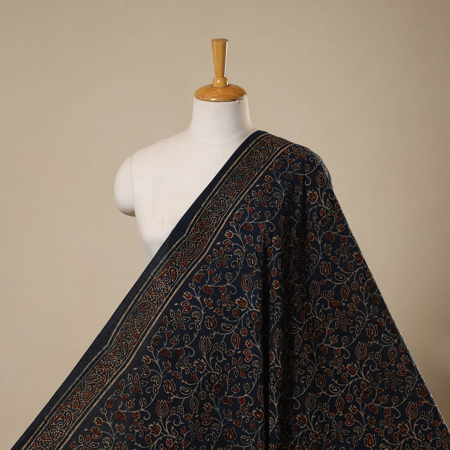 Blue ajrakh cotton fabric from Kutch, Gujarat, is block printed by artisan A. Jabbar Haji Zakariya Khatri using traditional techniques and natural dyes. Renowned for its rich hues and intricate patterns, it beautifully blends heritage with modern appeal. Crafted on breathable cotton, it’s perfect for creating kurtas, dresses, shirts or home decor pieces.
