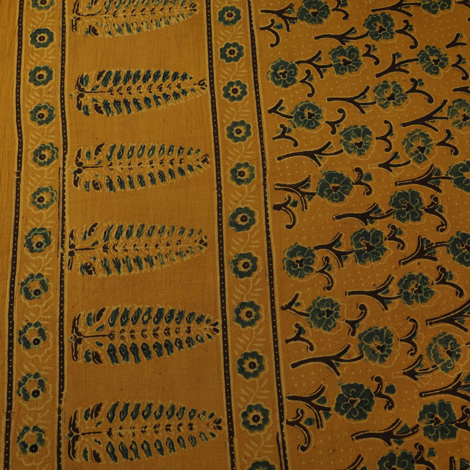 Ajrakh cotton fabric from Kutch, Gujarat, is block printed by artisan A. Jabbar Haji Zakariya Khatri using traditional techniques and natural dyes. Renowned for its rich hues and intricate patterns, it beautifully blends heritage with modern appeal. Crafted on breathable cotton, it’s perfect for creating kurtas, dresses, shirts or home decor pieces.