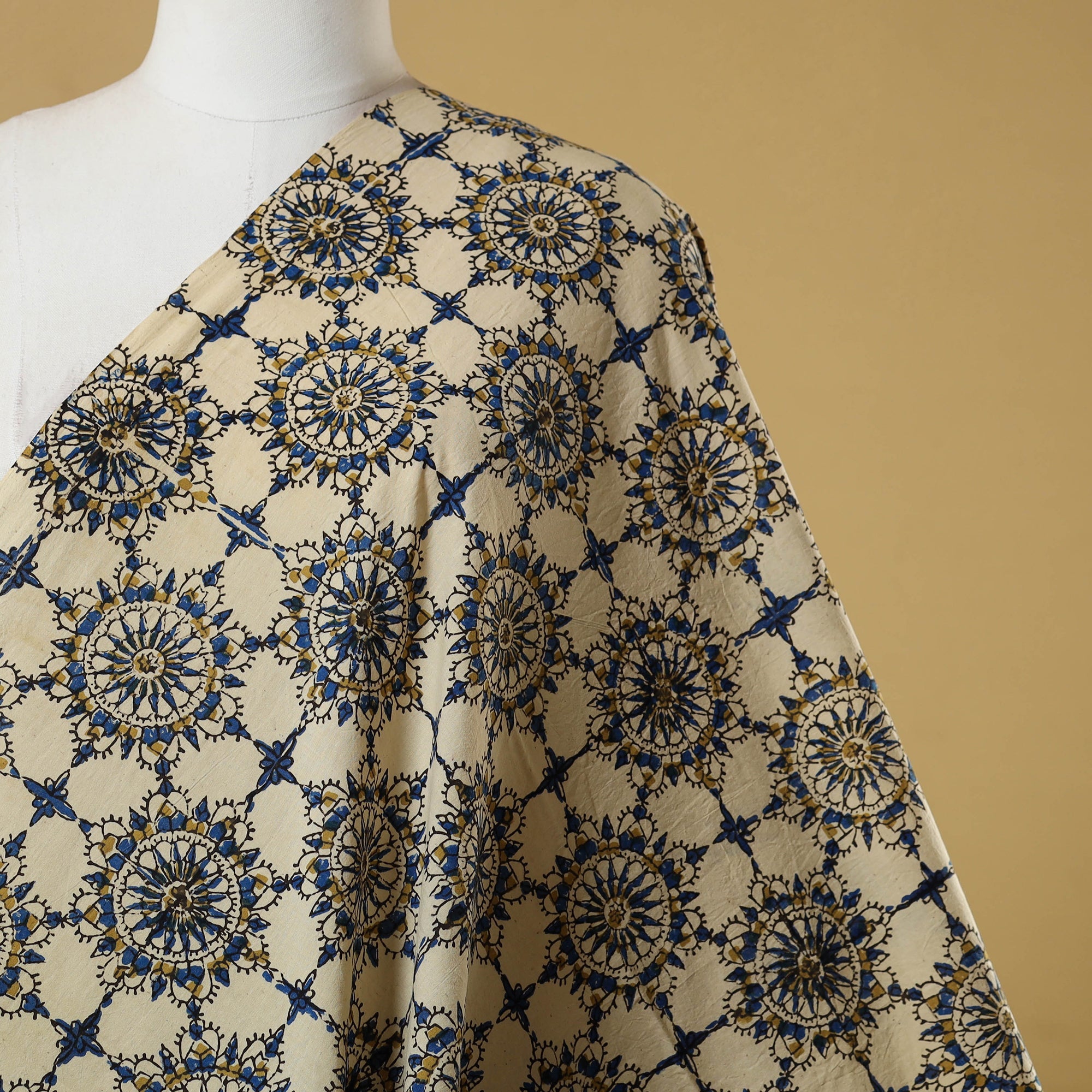 Beige ajrakh fabric is hand block-printed in Kutch using natural dyes and age-old techniques passed down through generations. Crafted with precision, each motif reflects Gujarat’s rich textile heritage. Made of breathable cotton, it's ideal for creating kurtas, shirts, dresses, or even elegant home decor accents.