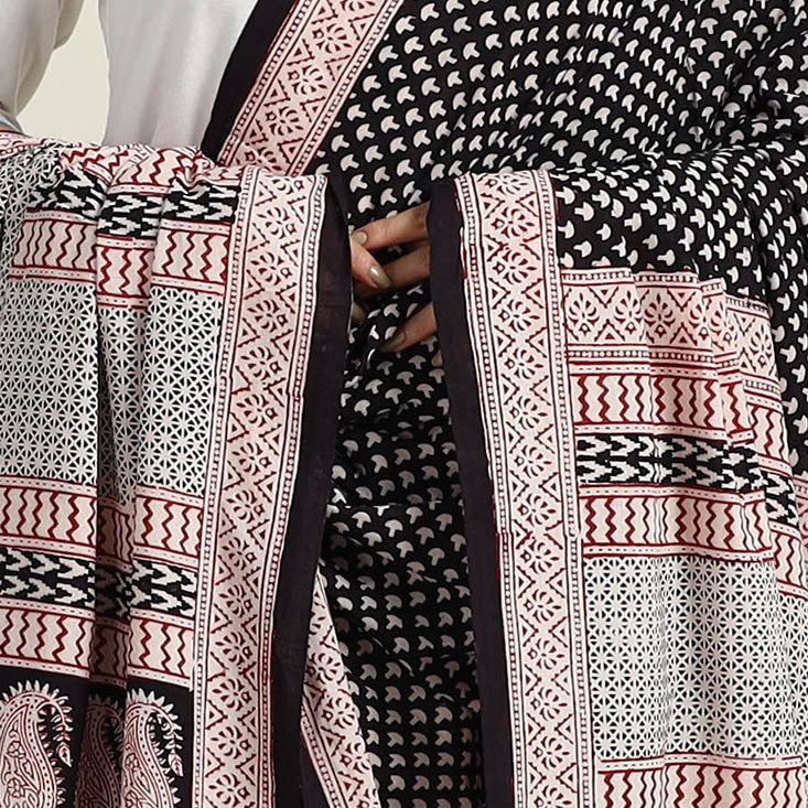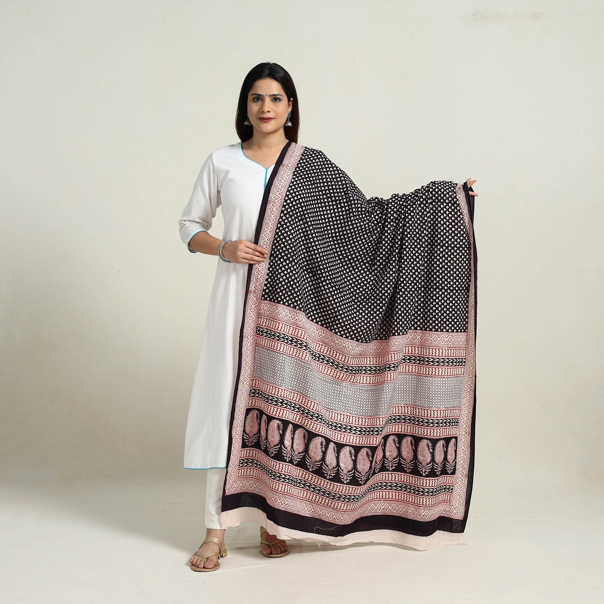 Black - Natural Dyed Hand Block Print Cotton Bagh Dupatta 02