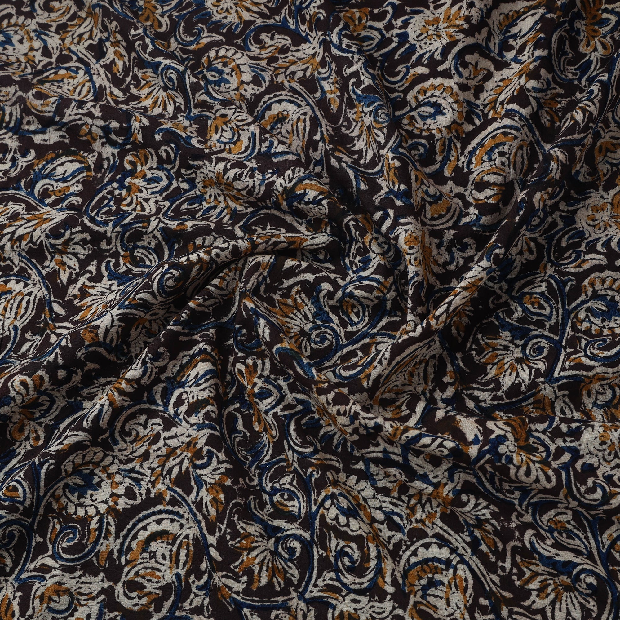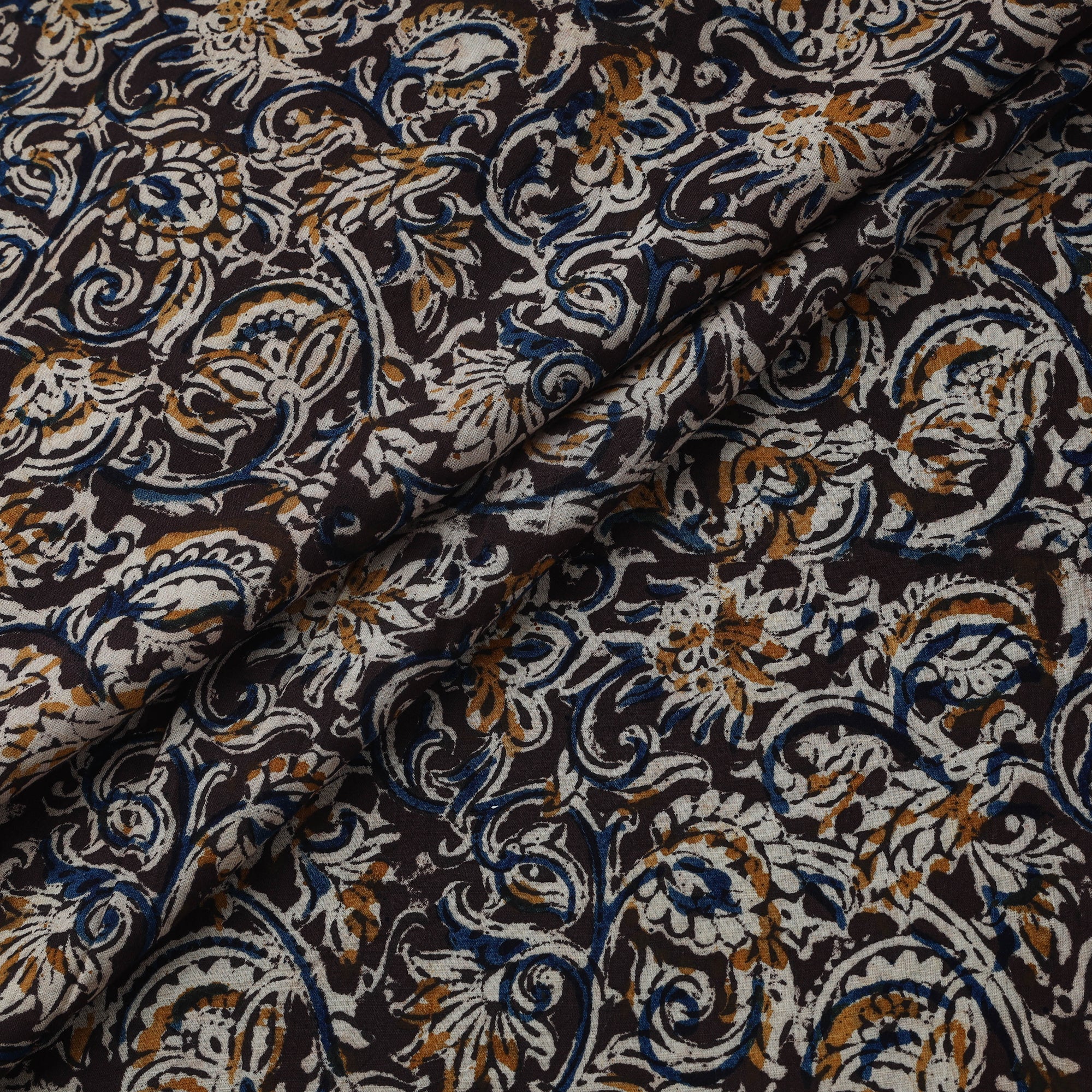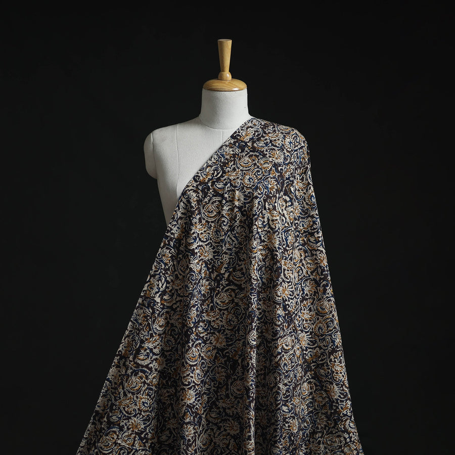 Black - Natural Dyed Hand Block Print Cotton Kalamkari Fabric 02