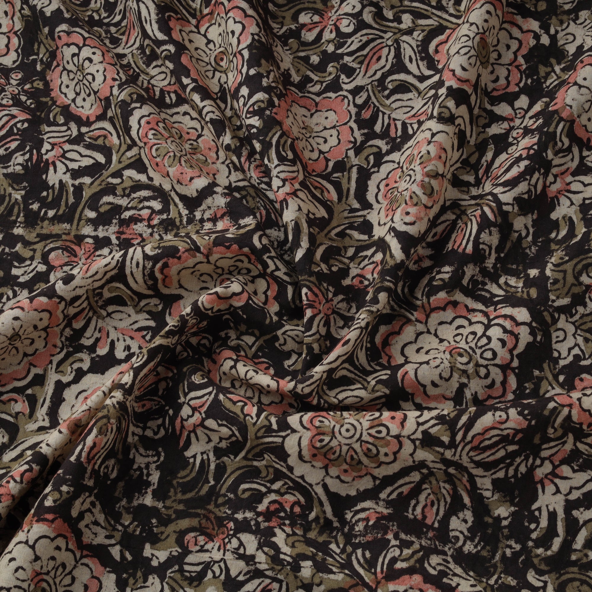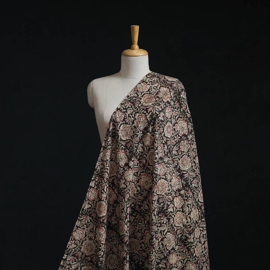 Kalamkari hand block print cotton fabric is crafted using one of the oldest and most intricate printing techniques in India, with origins tracing back centuries. Skilled artisans use hand-carved wooden blocks dipped in natural dyes to create detailed Kalamkari motifs inspired by mythology, nature, and traditional patterns. This fabric reflects generations of practiced skill and cultural legacy. It is ideal for stitching garments, dupattas, or adding distinctive accents to home décor.