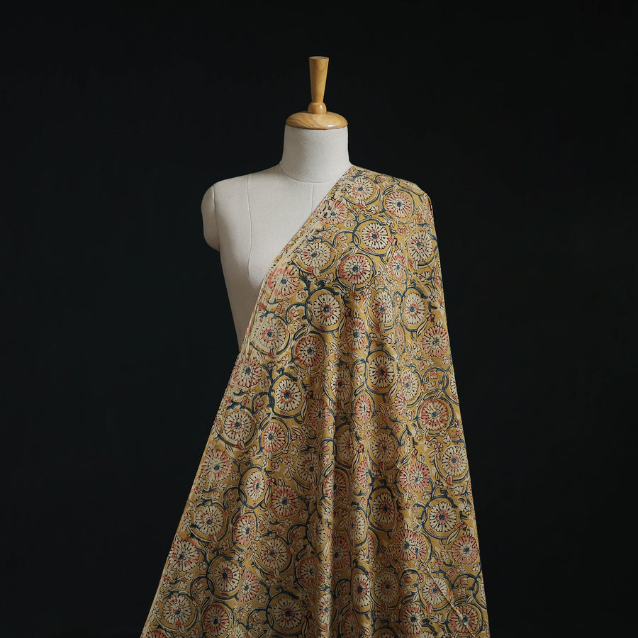 Kalamkari hand block print cotton fabric is crafted using one of the oldest and most intricate printing techniques in India, with origins tracing back centuries. Skilled artisans use hand-carved wooden blocks dipped in natural dyes to create detailed Kalamkari motifs inspired by mythology, nature, and traditional patterns. This fabric reflects generations of practiced skill and cultural legacy. It is ideal for stitching garments, dupattas, or adding distinctive accents to home décor.