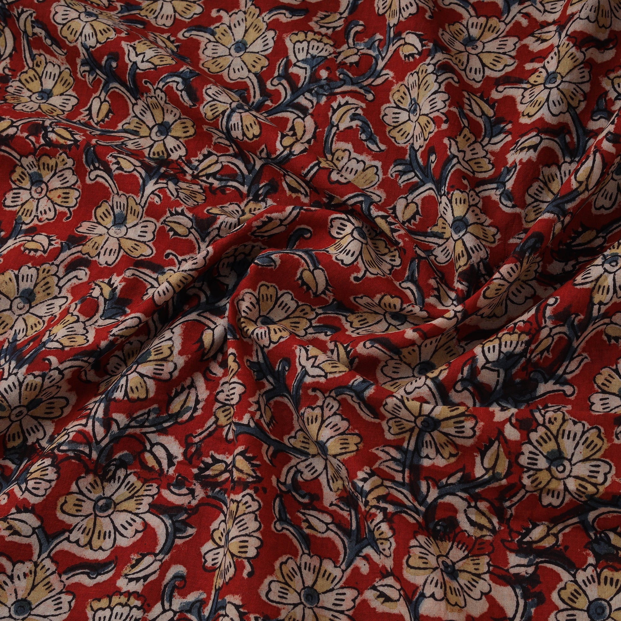 Kalamkari hand block print cotton fabric is crafted using one of the oldest and most intricate printing techniques in India, with origins tracing back centuries. Skilled artisans use hand-carved wooden blocks dipped in natural dyes to create detailed Kalamkari motifs inspired by mythology, nature, and traditional patterns. This fabric reflects generations of practiced skill and cultural legacy. It is ideal for stitching garments, dupattas, or adding distinctive accents to home décor.
