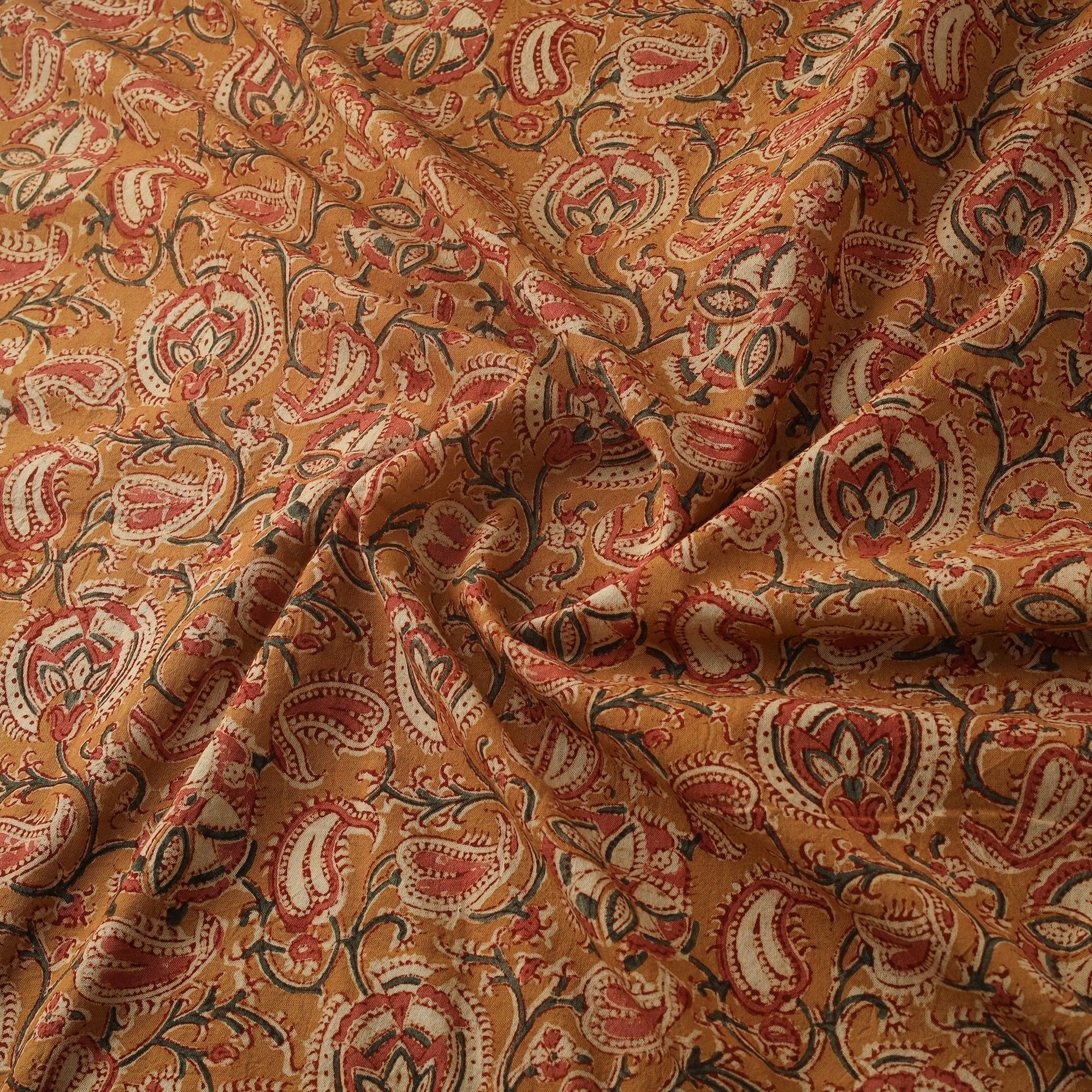 Orange - Natural Dyed Hand Block Print Cotton Pedana Kalamkari Fabric 10