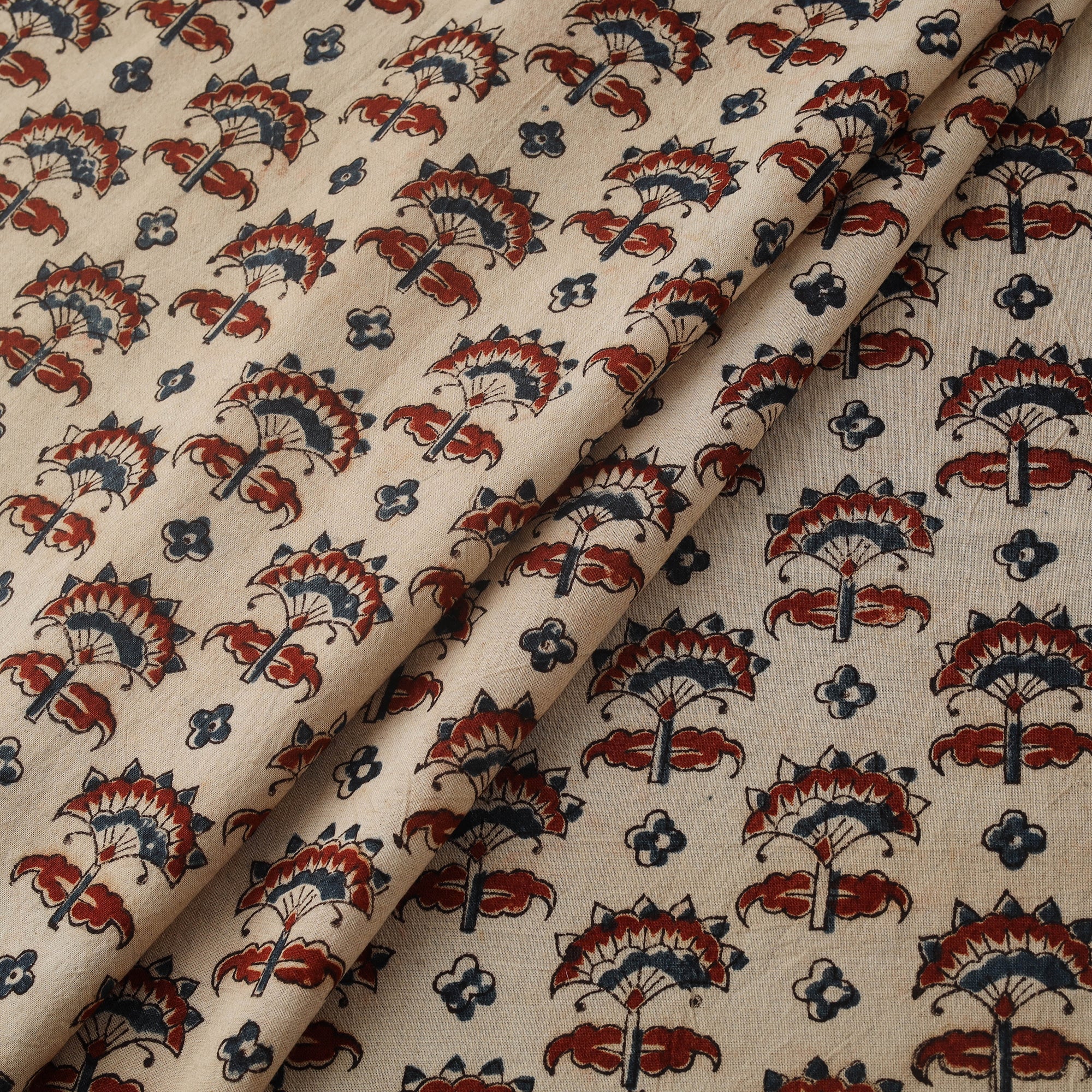 Beige - Natural Dyed Hand Block Print Cotton Pedana Kalamkari Fabric 12