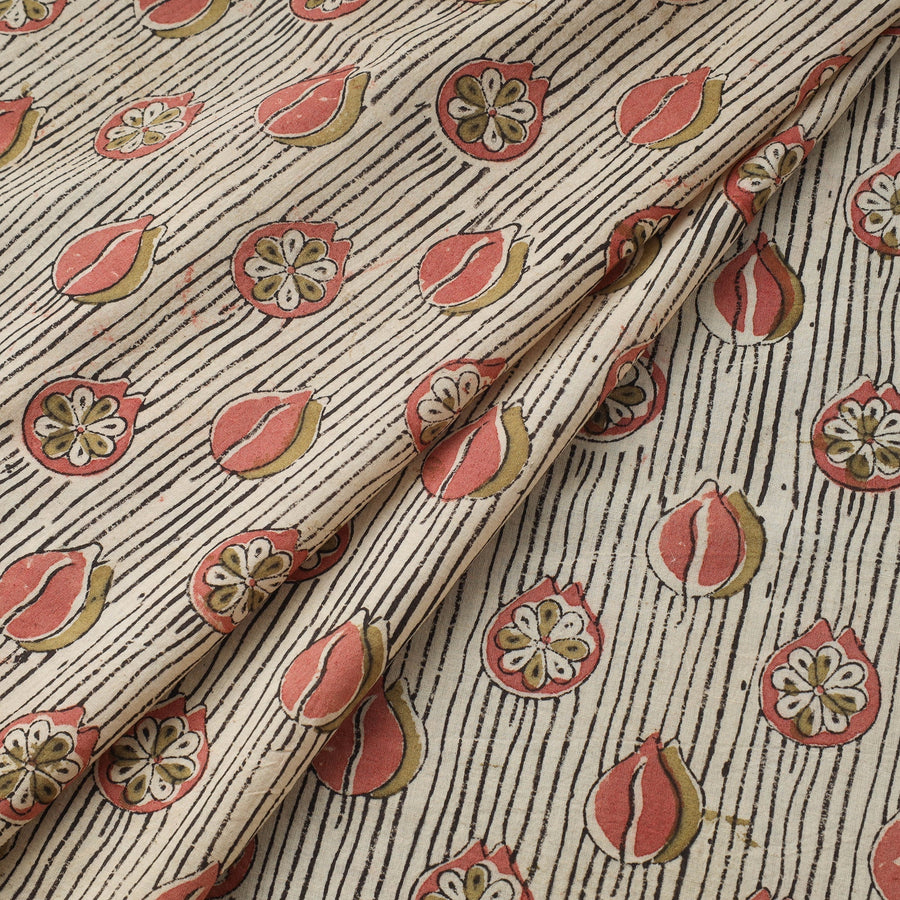 Beige - Natural Dyed Hand Block Print Cotton Pedana Kalamkari Fabric 17