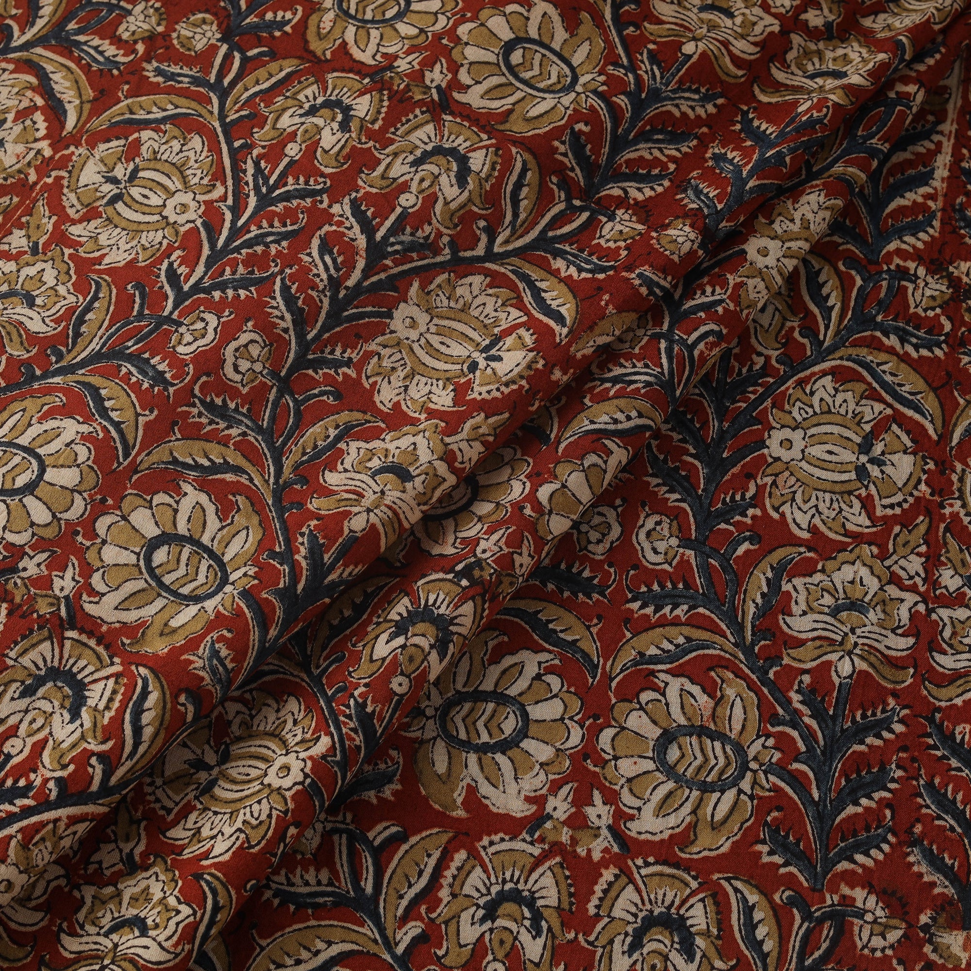 Natural Dyed Hand Block Print Cotton Pedana Kalamkari Fabric 38