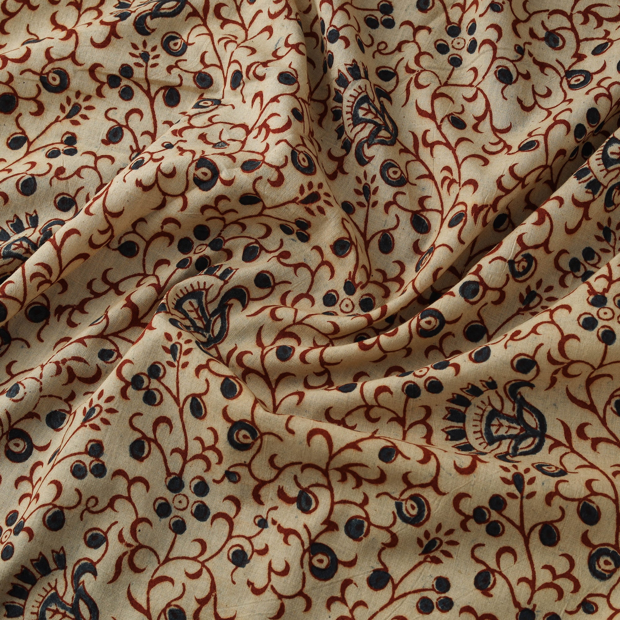 • Natural Dyed Hand Block Print Cotton Pedana Kalamkari Fabric 49